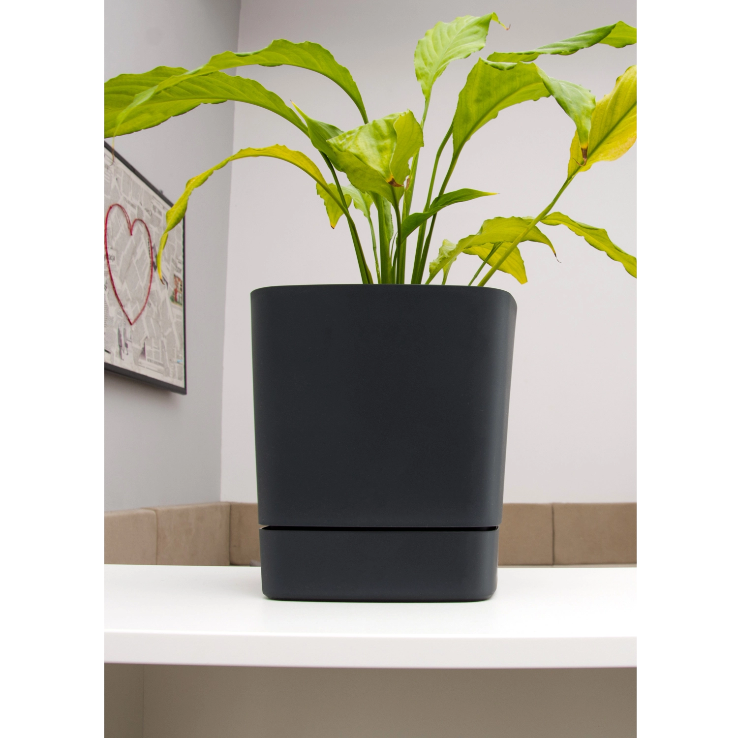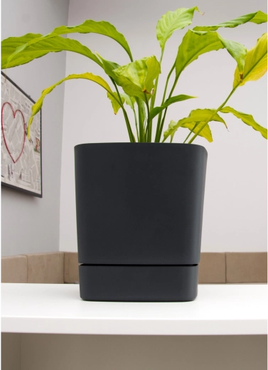 Zoek je een moderne en praktische oplossing voor je planten? De bloempot met onderschotel CLIMA in het zwart combineert esthetiek en functionaliteit. Het matte oppervlak en de vierkante vorm accentueren de moderne look van je huis, terras of balkon, terwijl de geïntegreerde onderschotel de planten beschermt tegen te veel water.
