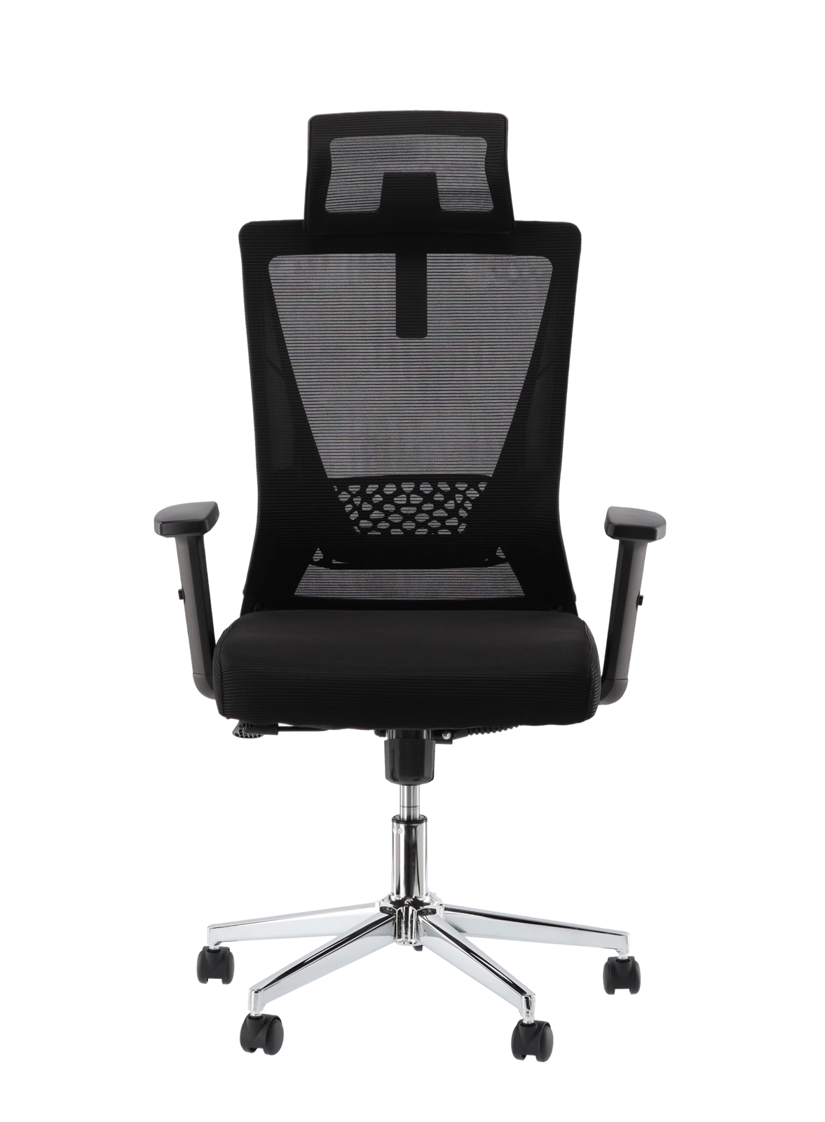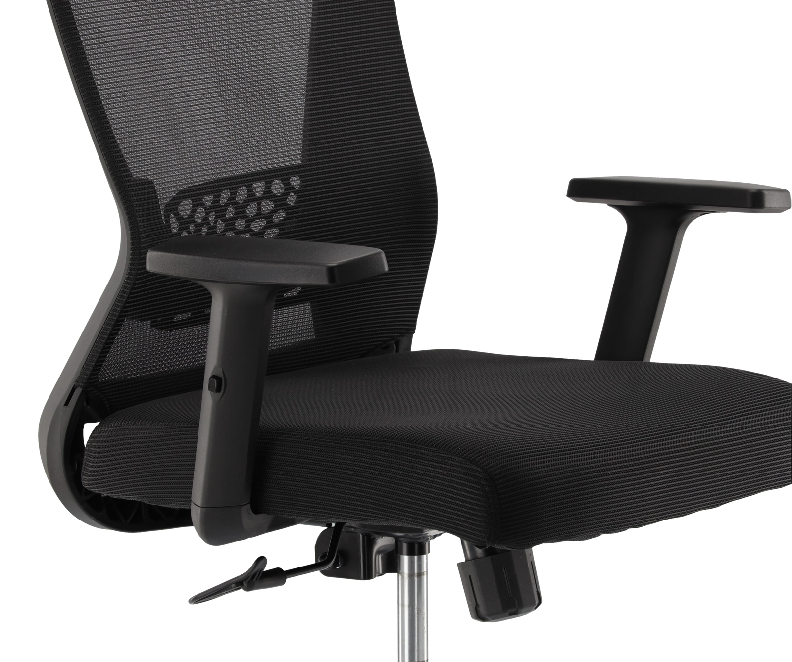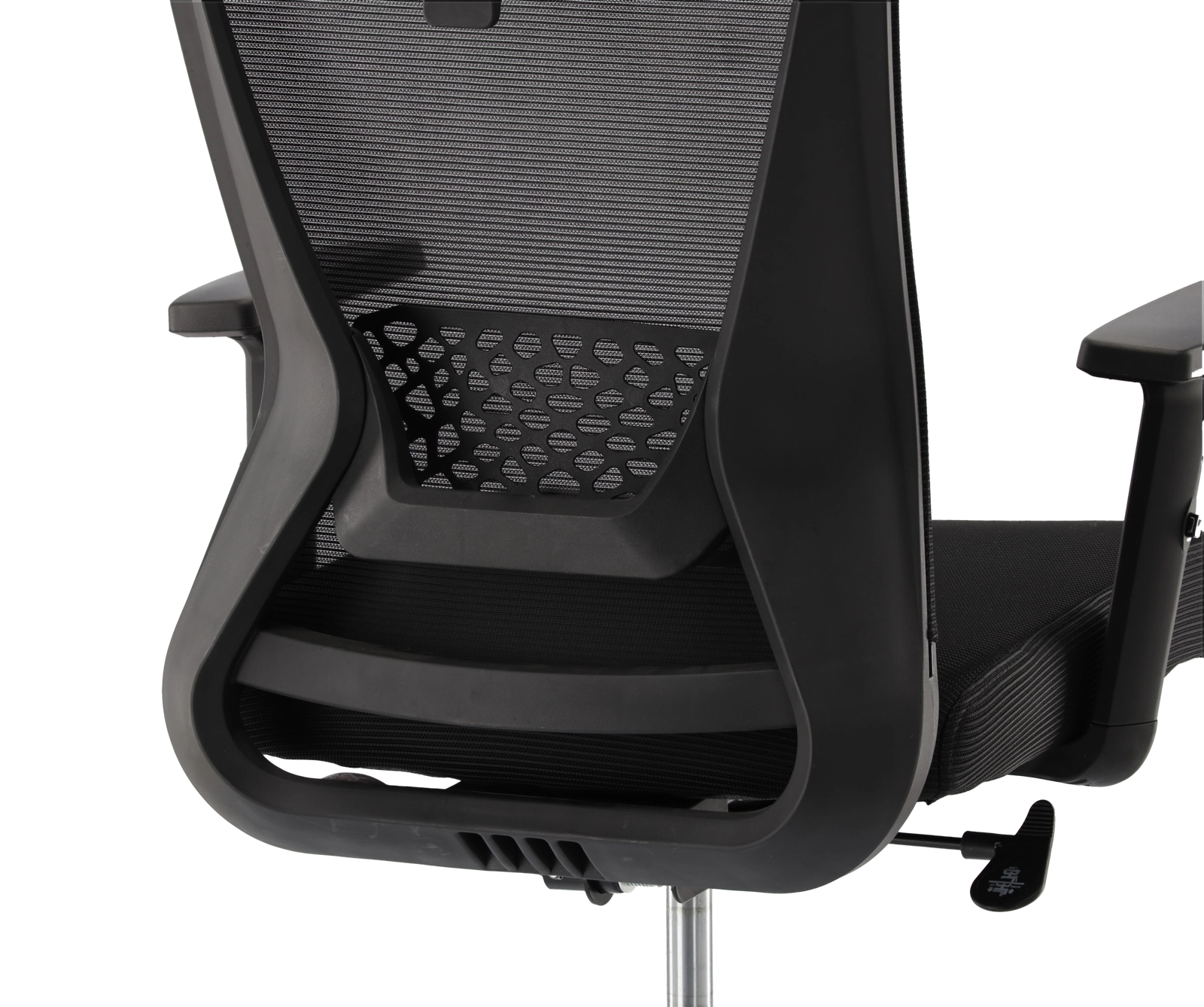 Het mesh rugpaneel zorgt voor luchtcirculatie en de geïntegreerde lendensteun houdt de wervelkolom in de juiste positie, ook bij langdurig zitten.