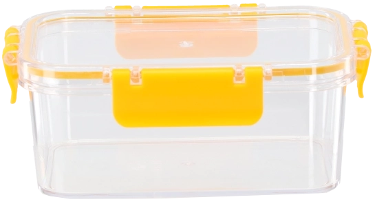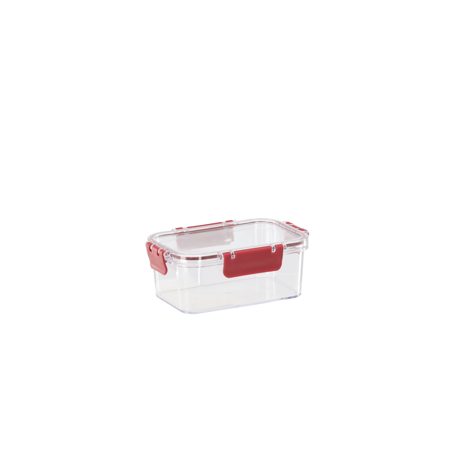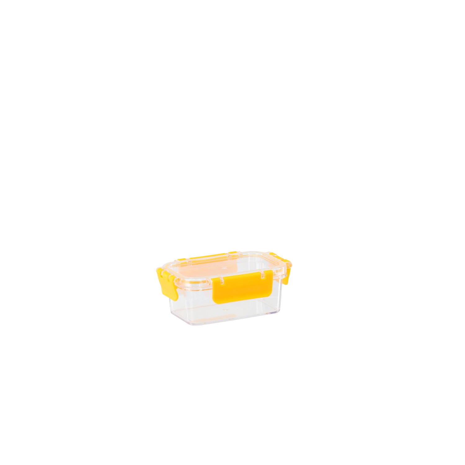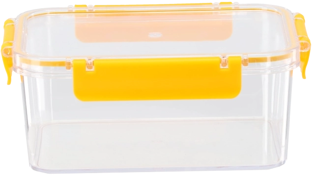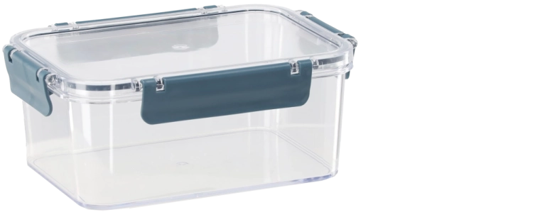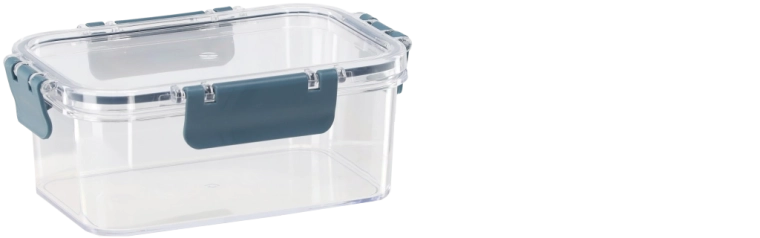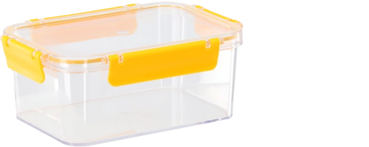 Transparante wanden laten je de inhoud in één oogopslag zien en de rechthoekige vorm bespaart ruimte in koelkast en kasten.