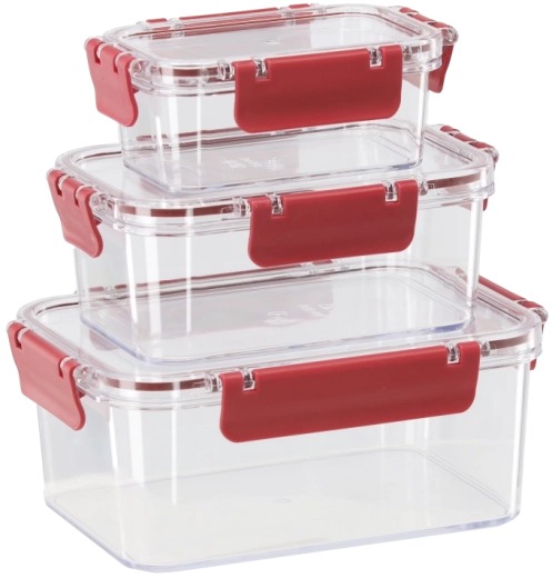 Drie praktische formaten – 0,37 l voor snacks en kleinigheden, 0,9 l voor bijgerechten en 1,7 l voor hoofdgerechten – dekken de meeste behoeften in de keuken. Duurzaam, voedselveilig kunststof is eenvoudig te onderhouden en de rechthoekige vorm maakt efficiënt ruimtegebruik mogelijk in koelkast en voorraadkast.