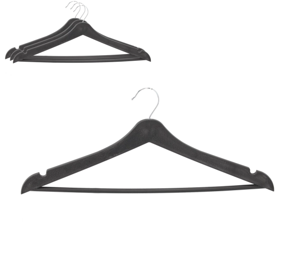 De 360° draaibare haak maakt het eenvoudig de oriëntatie van kleding aan de stang te veranderen, inkepingen op de schouders houden items met bandjes veilig vast en de onderste dwarslat is ideaal voor broeken, sjaals of riemen. De stevige constructie van ABS en PET met nylonfluweel-afwerking kan ook zwaardere jassen en truien aan.