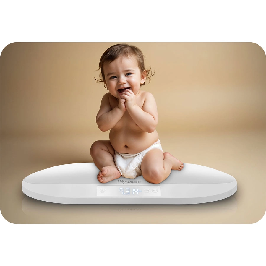 De elektronische babyweegschaal van Nukido is een betrouwbare hulp voor ouders die de gezonde groei van hun baby willen bijhouden. De extreme nauwkeurigheid van 0,005 kg registreert zelfs de kleinste gewichtsveranderingen – ideaal voor borstgevoede baby’s, premature kindjes en voor dagelijkse controle thuis. Het ergonomisch gevormde, brede weegoppervlak zorgt voor comfort en stabiliteit, terwijl het verlichte LCD-display de afleesbaarheid verbetert.