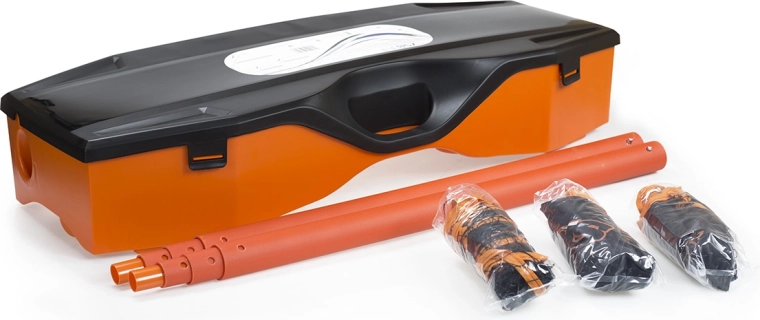 Lichte constructie met telescopische stangen en overzichtelijk opgeborgen componenten voor montage in enkele minuten en comfortabel transport.