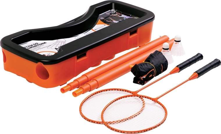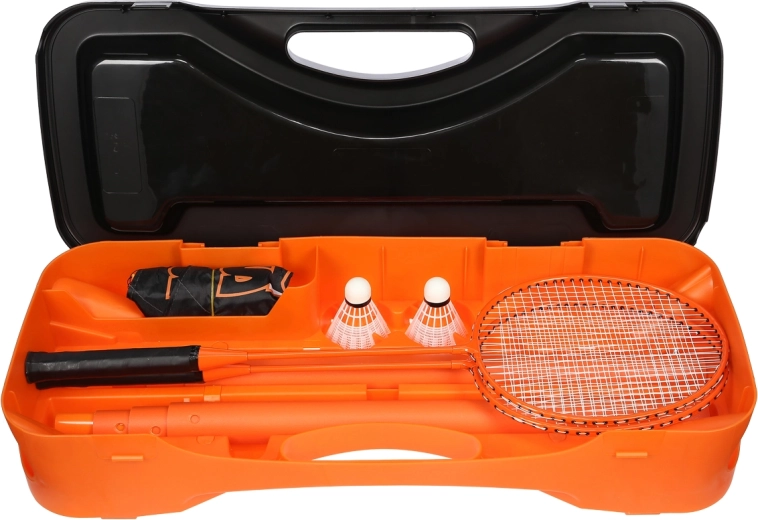 De set bevat alles wat je nodig hebt om direct te spelen: twee rackets, twee shuttles, een opvouwbaar net en een stevige transportkoffer met georganiseerde vakken. De compacte afmetingen (68 × 28,5 × 12 cm) passen gemakkelijk in de auto of thuisopslag, zodat je kunt badmintonnen in de tuin, het park of op vakantie.