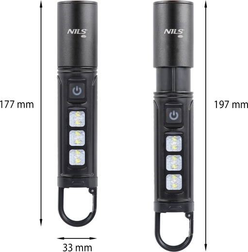 Zij-LED’s in het handvat voegen wit en rood licht toe – rood is ideaal om nachtzicht te behouden en als waarschuwingssignaal. USB-opladen met geïntegreerde Li-Ion 18650-accu bespaart batterijen en geld. Dankzij IPX4 weerstaat hij regen en opspattend water, en de praktische lus/karabiner maakt ophangen aan rugzak, riem of in de tent mogelijk.