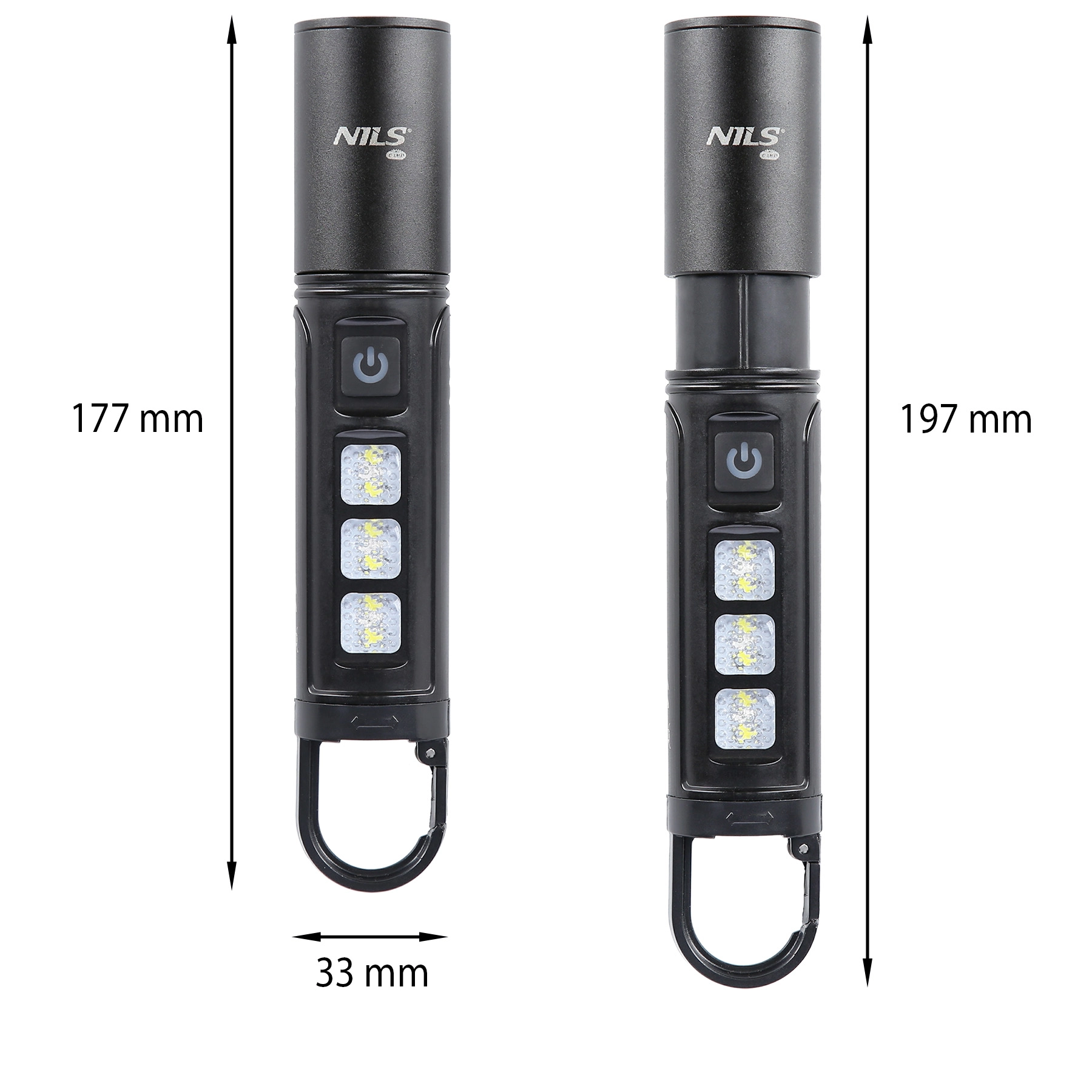 Stevige behuizing van ABS en aluminium, IPX4-waterbestendig en ophanglus/karabiner voor eenvoudig ophangen aan rugzak, riem of in de tent.