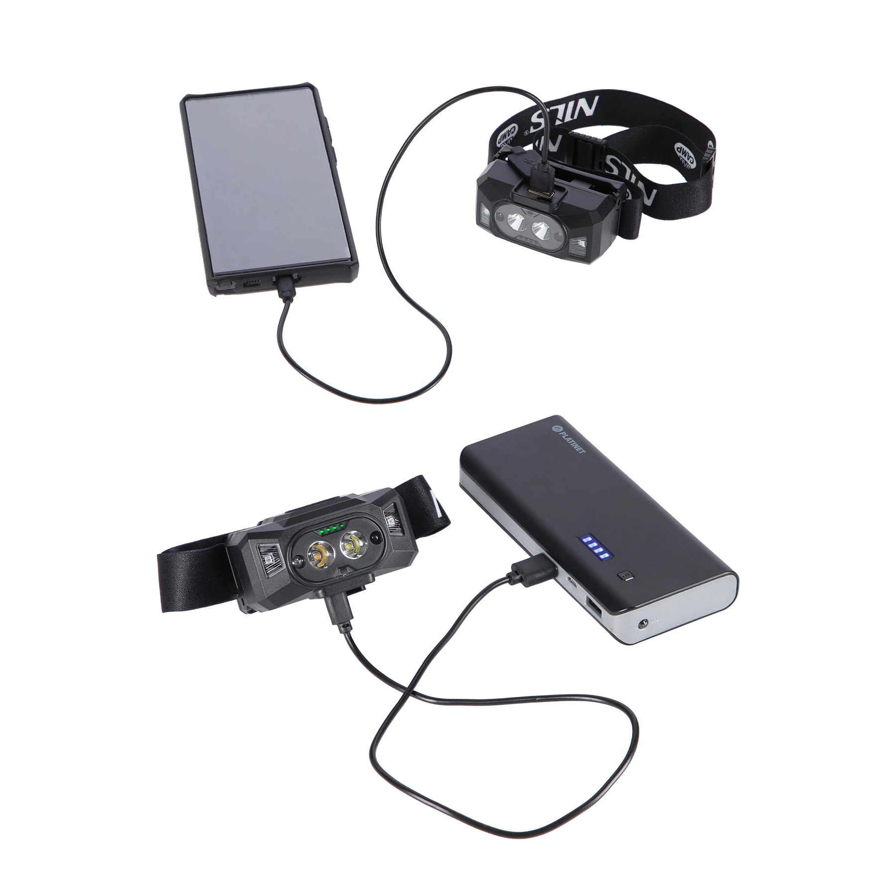 Dankzij USB-opladen en de geïntegreerde powerbankfunctie houd je niet alleen de hoofdlamp, maar indien nodig ook je telefoon of andere kleine apparaten draaiende. De behuizing van ABS en TPR is robuust, IPX5 beschermt tegen regen en opspattend water en de verstelbare elastische band biedt comfort, ook bij langer dragen.