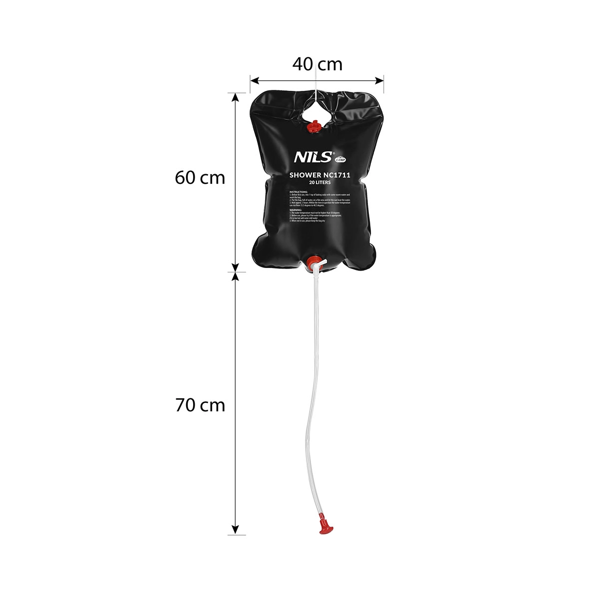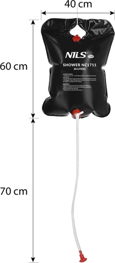 Het duurzame materiaal garandeert een lange levensduur, terwijl de slang met douchekop comfortabel en zuinig douchen mogelijk maakt. Bij verstandig doseren volstaat een volle zak voor tot wel twee personen. De douche is compatibel met de draagbare kleedtent van NILS CAMP, zodat je overal onderweg een privéruimte kunt creëren.