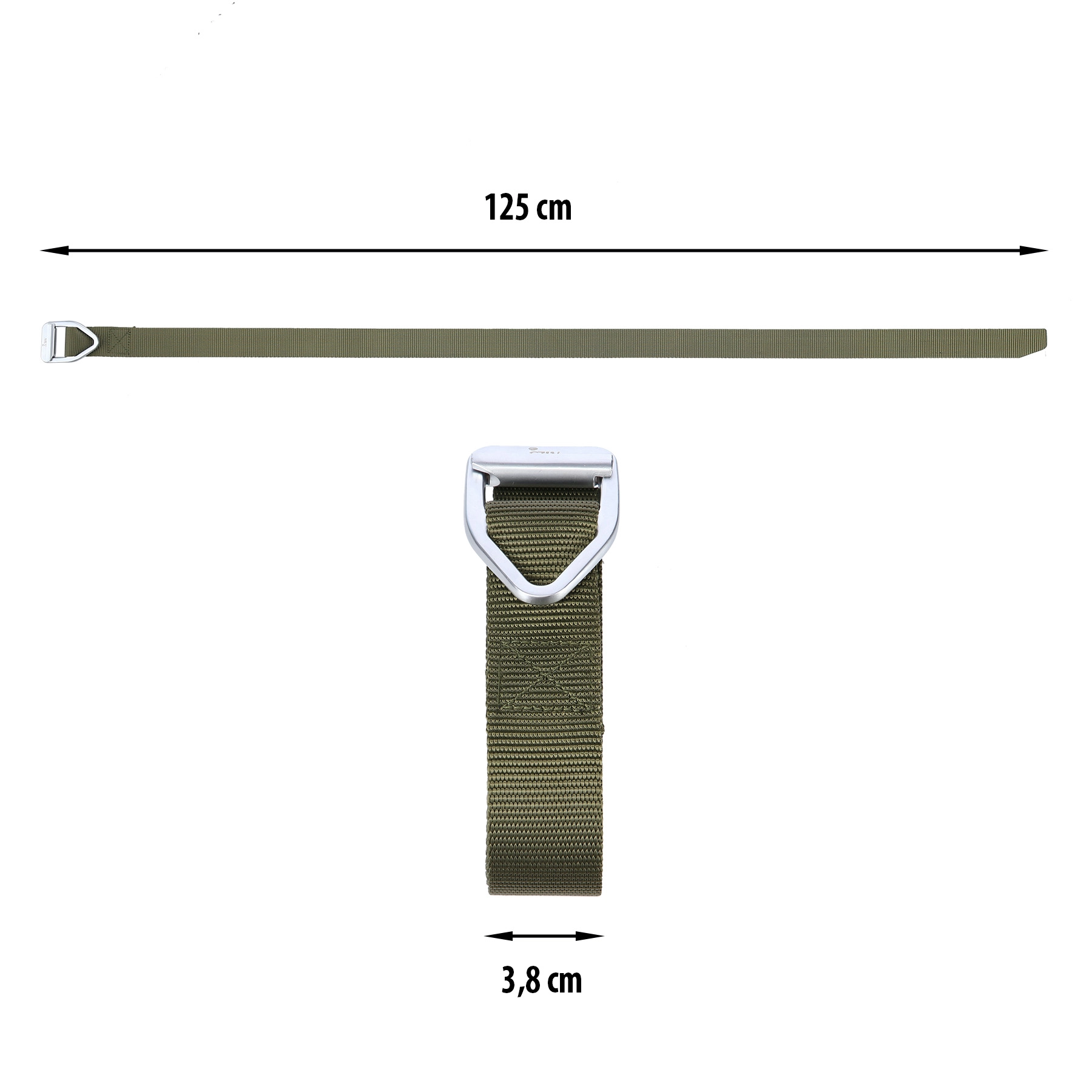 De universele lengte van 125 cm en de breedte van 3,8 cm passen bij de meeste broeken – van jeans tot outdooruitrusting. Dankzij de soepel verstelbare gesp pas je de riem eenvoudig aan je actuele behoeften aan, of je nu aan het wandelen bent, aan het werk of in de stad.