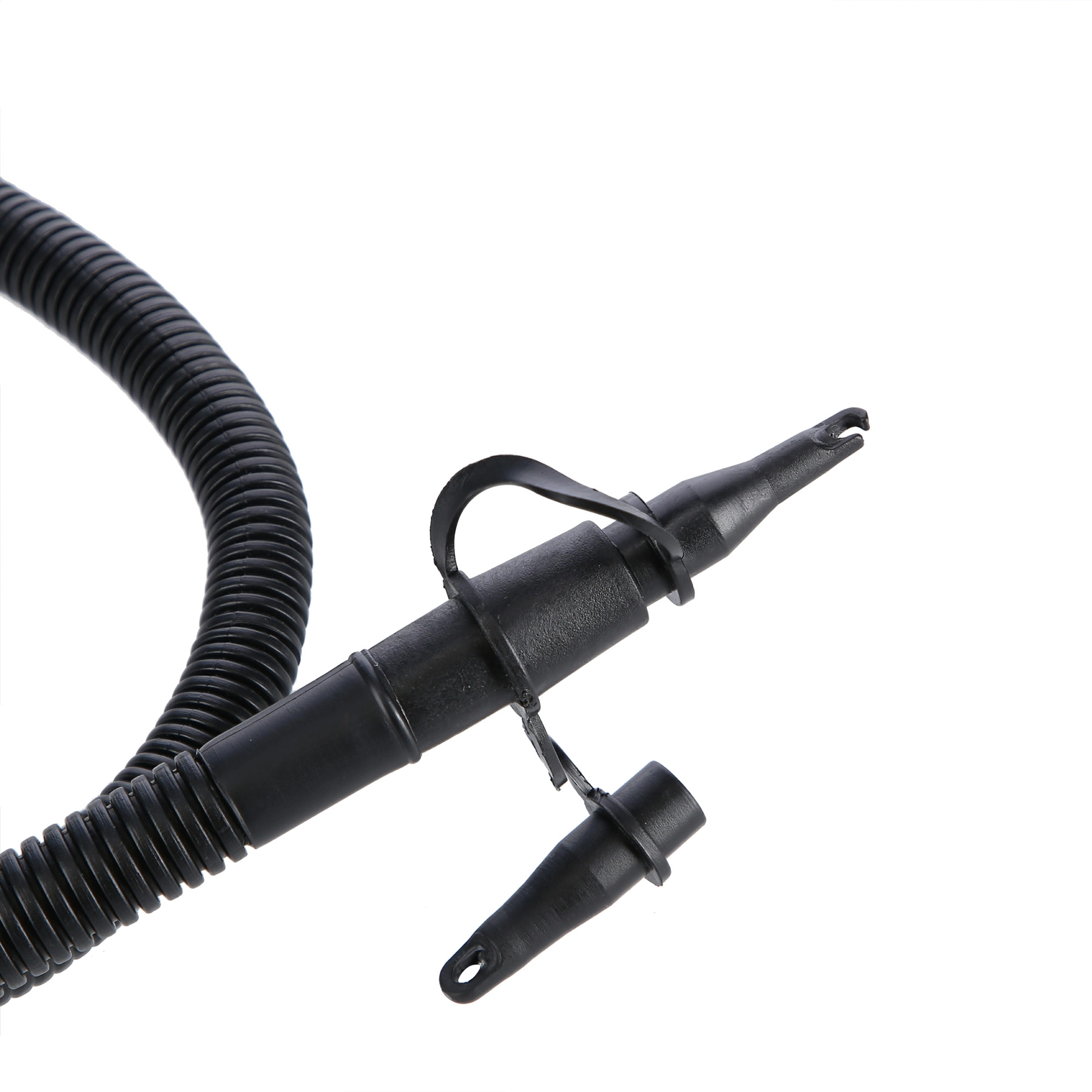 De flexibele geribbelde slang van 1 meter maakt het makkelijker om ventielen te bereiken en comfortabel te pompen in verschillende posities.