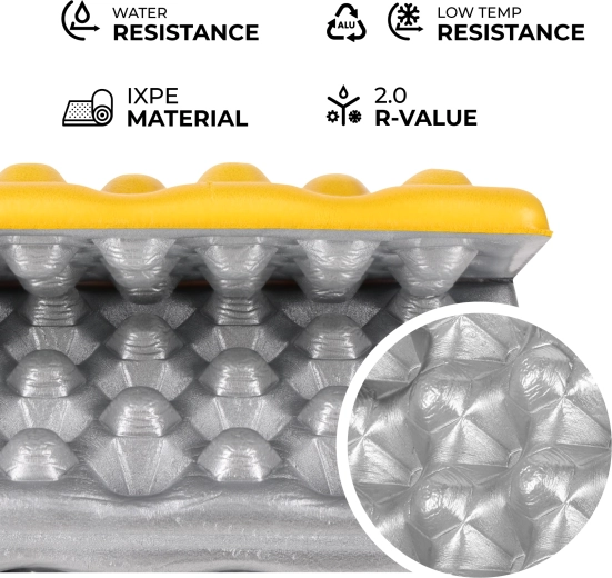 Licht en compact toeristisch zitkussen voor comfortabel uitrusten in de natuur. Dankzij IXPE-schuim en aluminiumfolie biedt het uitstekende thermische isolatie, is het waterdicht, duurzaam en ultralicht. Vouwt gemakkelijk op tot compacte afmetingen en past in zowel rugzak als zak.