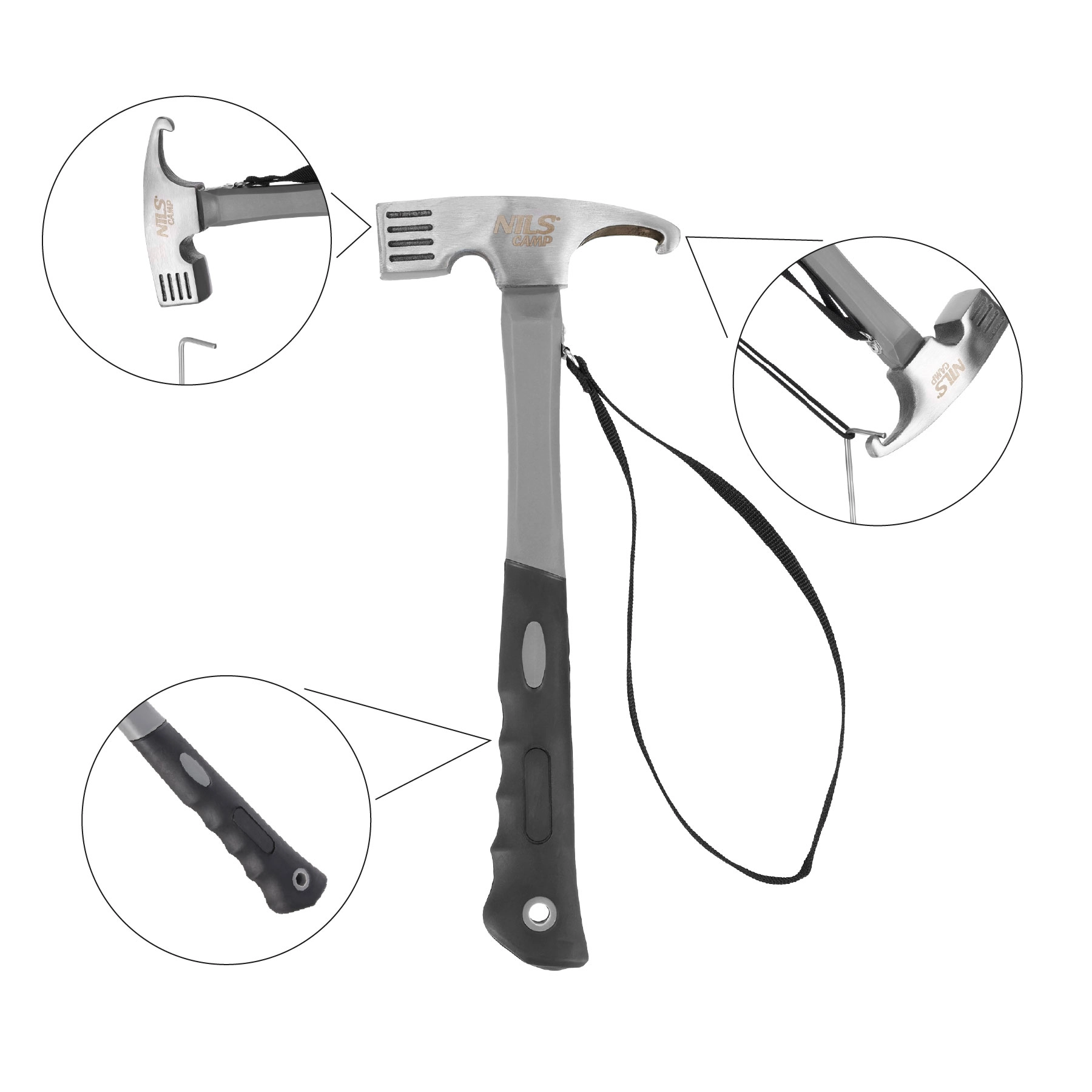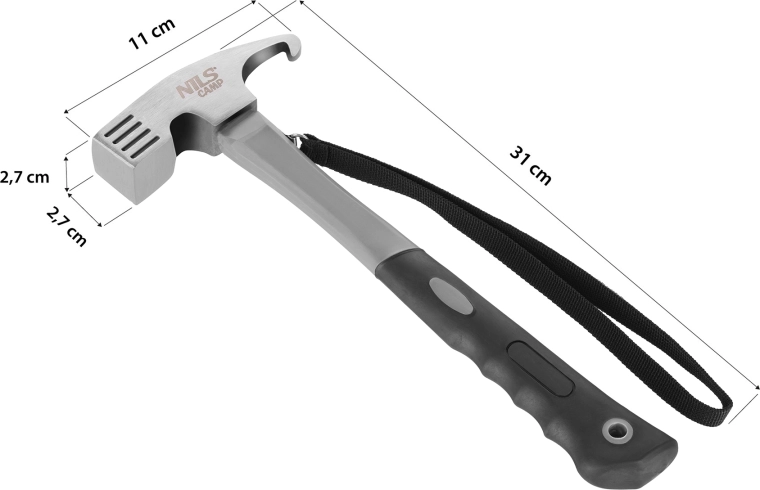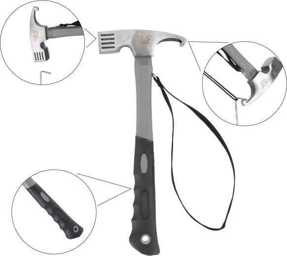 Zoek je een veelzijdig kampeergereedschap dat ook zware omstandigheden aankan? De NILS Camp kampeerhamer combineert een stevige kop van koolstofstaal voor efficiënt inslaan met een ergonomische handgreep van TPR en PP met antisliptextuur voor een zekere grip, zelfs in de regen. Dankzij de polslus minimaliseer je het risico om hem te laten vallen in het terrein.