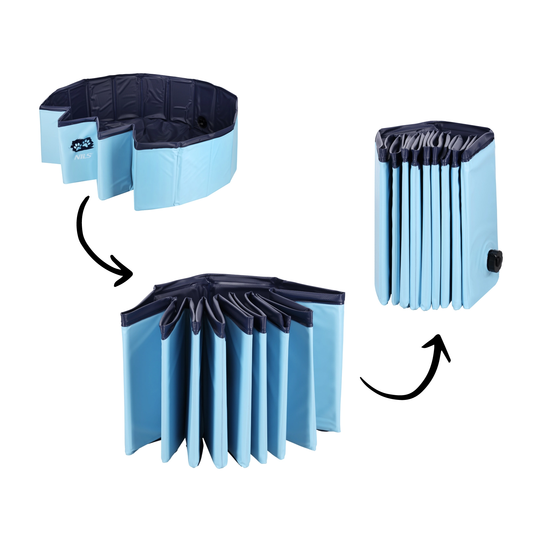Het opvouwbare hondenbad van NILS is een uitstekende keuze voor warme dagen in de tuin, op het terras of balkon. Dankzij het stevige PVC en de interne MDF-verstevigingen behoudt het zijn vorm en stabiliteit, zelfs bij wild waterplezier. Het niet-opblaasbare ontwerp zorgt voor snel gebruik – eenvoudig uitvouwen, vullen en het plezier kan beginnen.