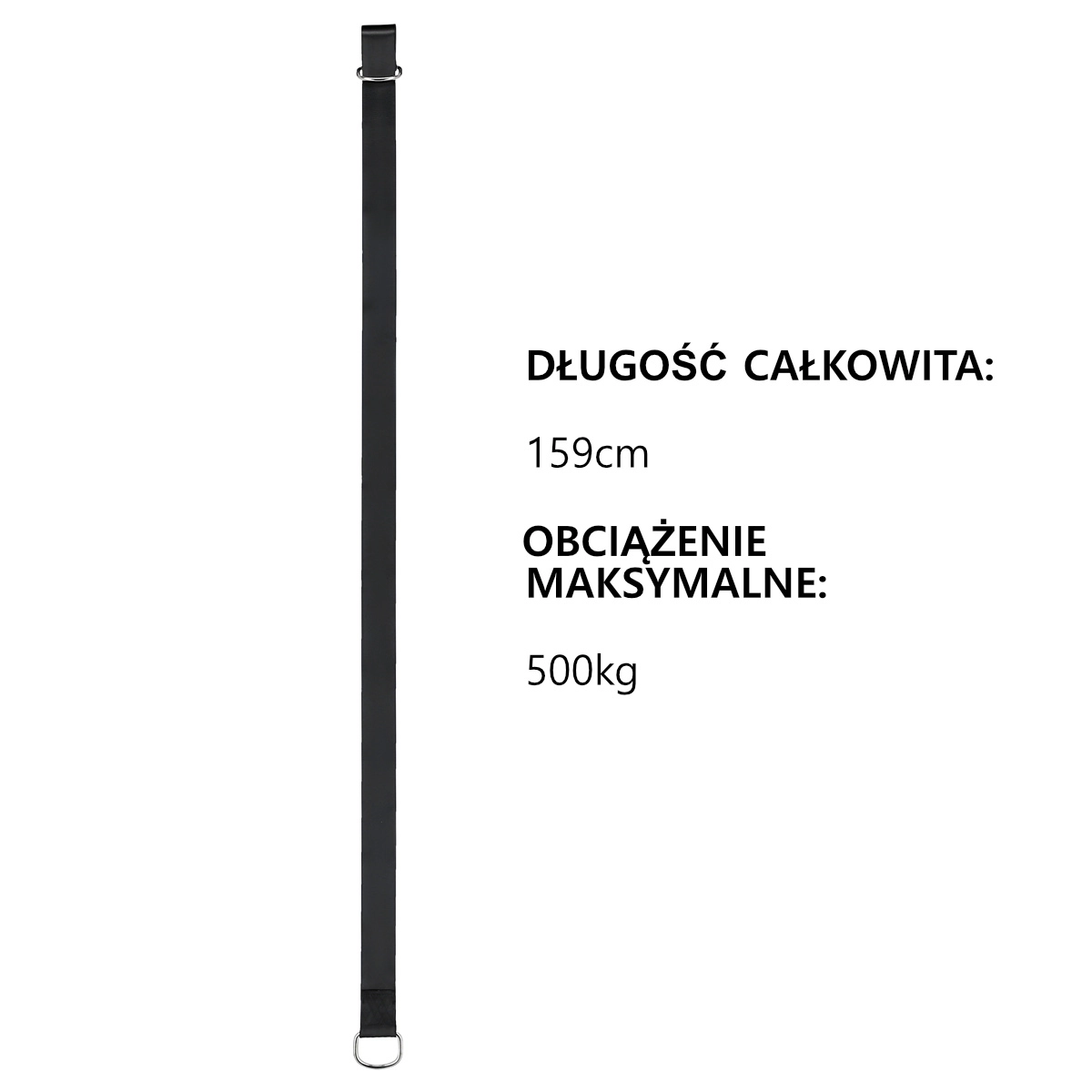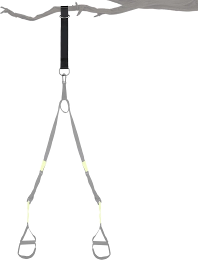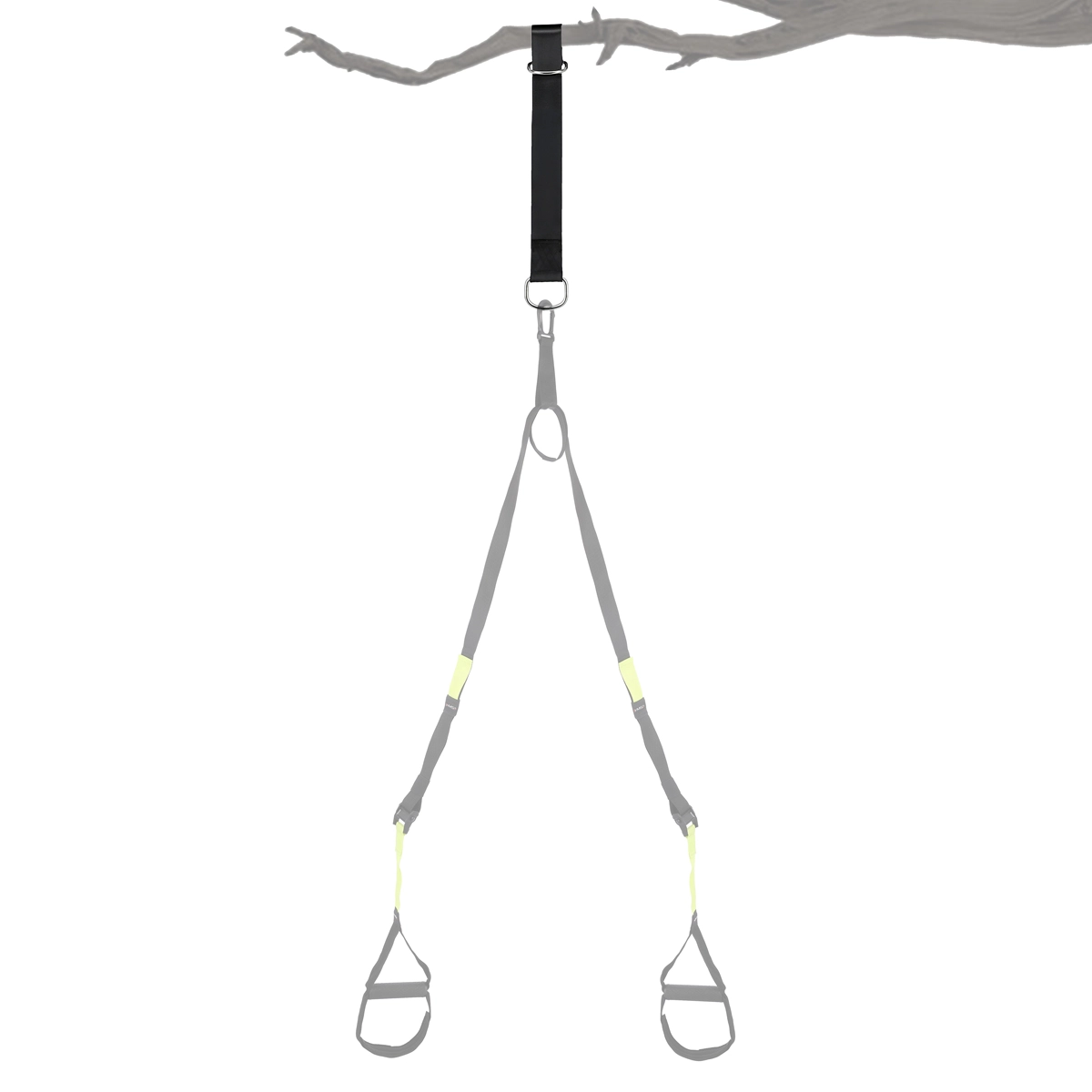 De lengte van 159 cm en de mogelijkheid om meerdere riemen met karabiners te koppelen geven je de vrijheid om het ophangen aan de specifieke omstandigheden aan te passen.