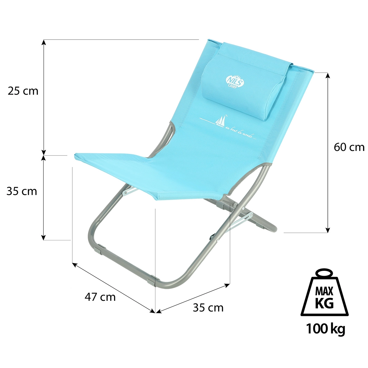 Geniet van comfort aan het water met de lichte en duurzame strandstoel NILS Camp NC3136 in blauwe kleur. Dankzij de stabiele stalen constructie, de stevige Oxford 600D-stof en een draagvermogen van 100 kg is hij ideaal voor aan zee, bij het zwembad en op de camping. Snel op te vouwen, laag gewicht van 2,5 kg en een praktisch kussentje ter ondersteuning van het hoofd garanderen maximaal comfort onderweg.