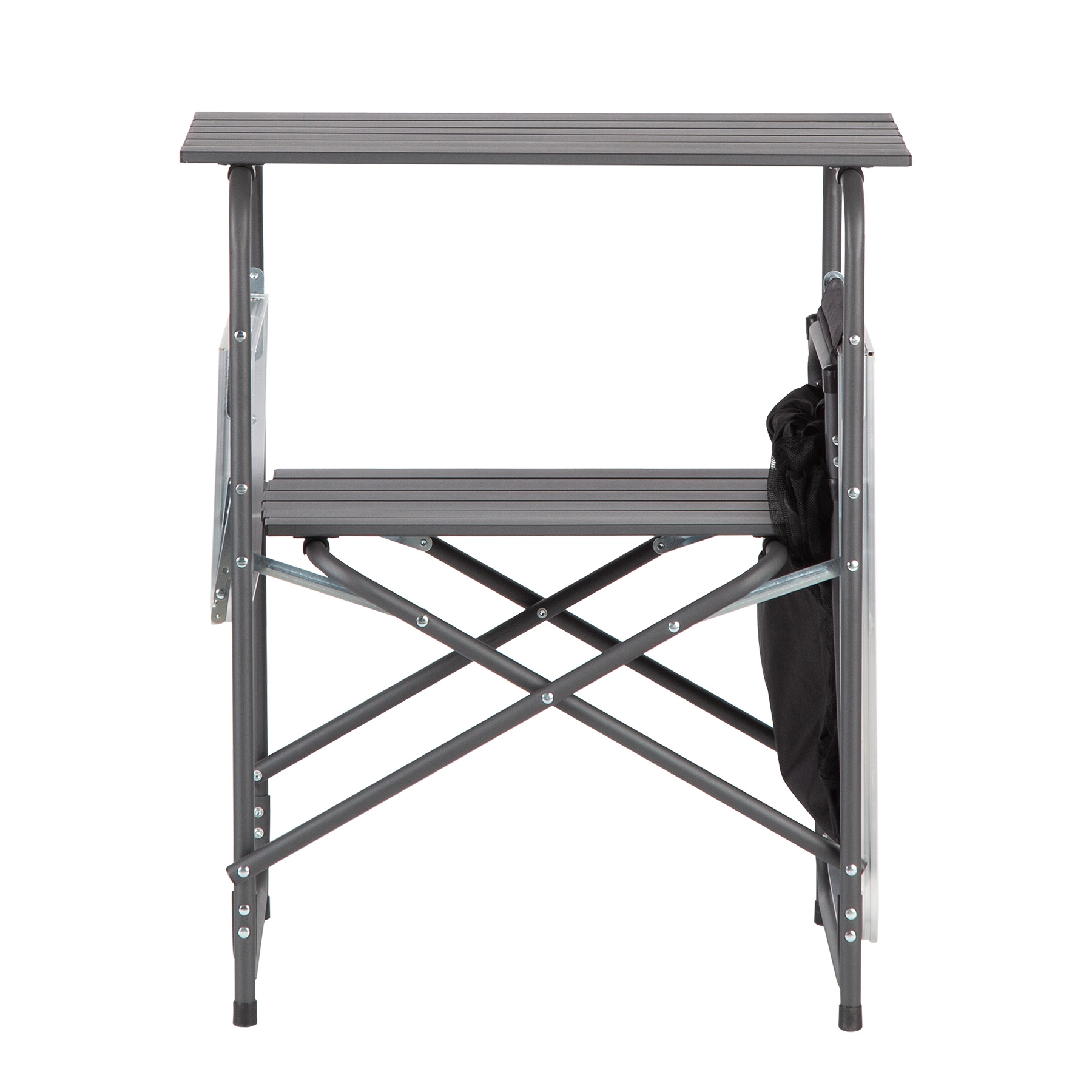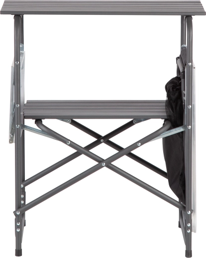 Twee opklapbare werkbladen bieden ruimte voor zowel de bereiding als het serveren van maaltijden. Wanneer je ruimte wilt besparen, klap je ze eenvoudig in – de kast wordt dan aanzienlijk kleiner en past gemakkelijk in de meegeleverde tas met handvat. Antislipvoetjes zorgen voor stabiliteit, ook op minder vlakke ondergronden.
