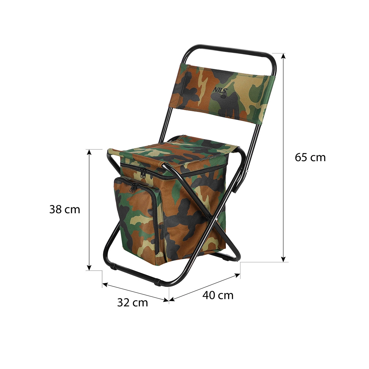 Met deze camo campingstoel heb je altijd een comfortabele zitplek en alles bij de hand. De geïntegreerde opbergruimte met isolerende laag houdt snacks en drankjes langer koel, terwijl het voorvak met rits sleutels, telefoon of portemonnee veilig bewaart. Dankzij de duurzame Oxford 600D bekleding en het stalen frame is de stoel een betrouwbare metgezel voor vissers, wandelaars en kampeerders.