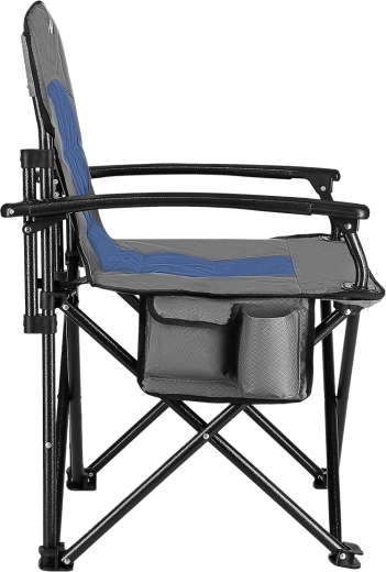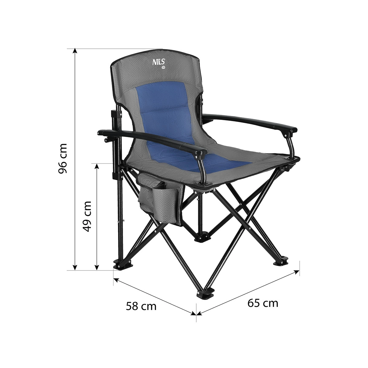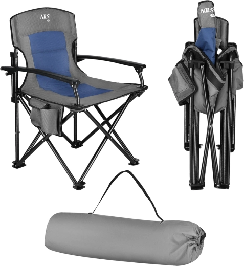 De opvouwbare stoel NILS Camp is ontworpen voor langdurig zitten zonder compromissen. De dubbellaagse bekleding van Oxford 600D polyester met zachte, gewatteerde vulling en stiksel behoudt zijn vorm en biedt stabiele ondersteuning. Zithoogte 49 cm en volwaardige armleuningen vergemakkelijken het gaan zitten en opstaan, terwijl de zijwaartse bekerhouder en klittenbandsluiting-vak alles wat je nodig hebt binnen handbereik houden.