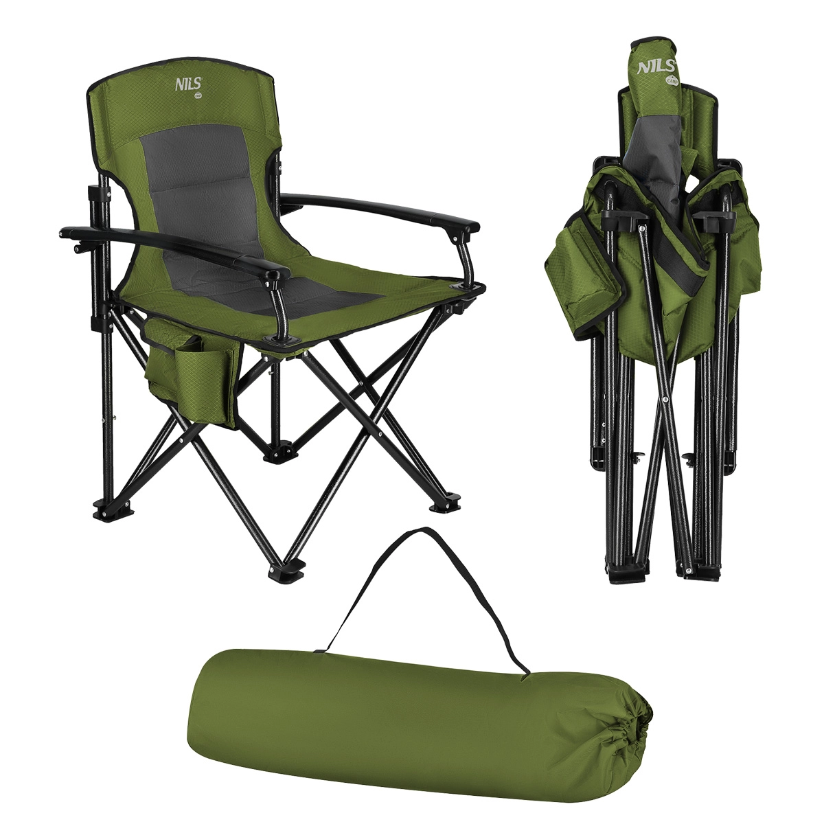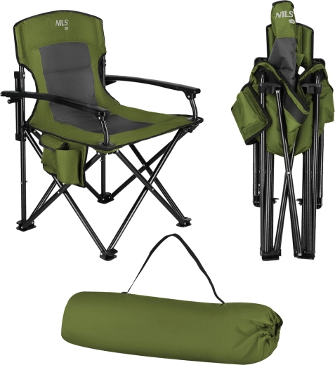 Geniet van comfort, waar je ook bent in de natuur. De opvouwbare NILS Camp-stoel is bekleed met dubbelgelaagd Oxford polyester 600D met zachte vulling, zodat je ook langer prettig kunt zitten. Armleuningen op volle grootte maken gaan zitten en opstaan makkelijker en aan de zijkant vind je een ronde bekerhouder en een zak met klep voor je telefoon, portemonnee en andere kleine spullen.