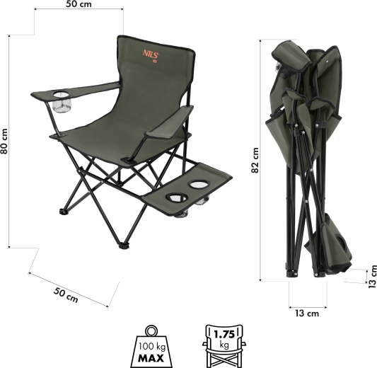 De opvouwbare stoel NILS Camp is een ideale keuze voor kamperen, picknicks, festivals en in de tuin. De zitting en rugleuning van 600D‑polyester met PE‑coating weerstaan slijtage en vocht, terwijl het stalen frame met poedercoating stabiliteit en een lange levensduur biedt. Dankzij het gewicht van 1,75 kg en het snelle inklappen neem je hem overal mee naartoe.