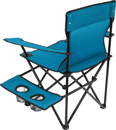 Doordachte extra’s verhogen het comfort bij elke zit: in de armleuning zit een ingebouwde houder voor beker of fles en het praktische zijtafeltje voegt nog eens twee mandjes toe voor drankjes en kleine benodigdheden. De stoel is in een oogwenk tot een compact formaat op te vouwen en dankzij de meegeleverde draagtas met handgreep gemakkelijk te vervoeren en op te bergen.