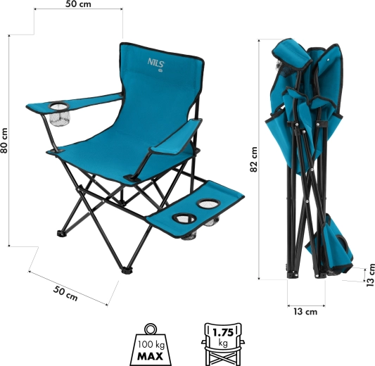 Deze opvouwbare campingstoel van NILS Camp is een ideale keuze voor kamperen, vissen, festivals en ontspanning in de tuin. De slijtvaste bekleding van 600D polyester met PE-coating beschermt tegen vocht en slijtage, terwijl het gepoedercoate stalen frame stabiliteit en een draagvermogen tot 100 kg biedt.