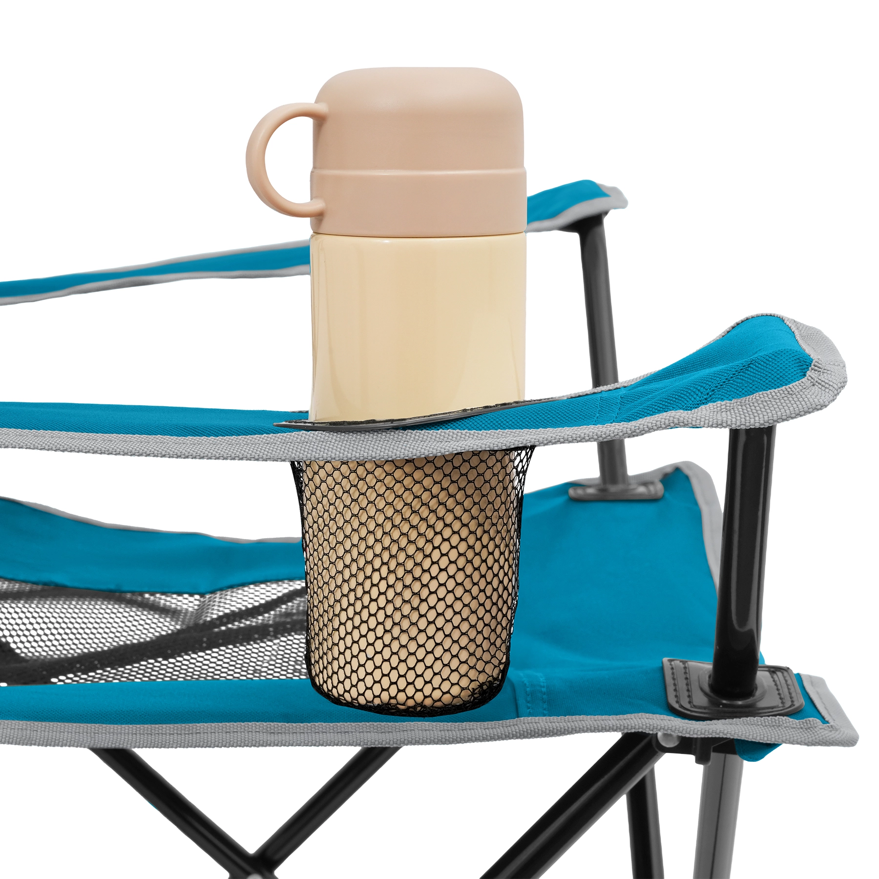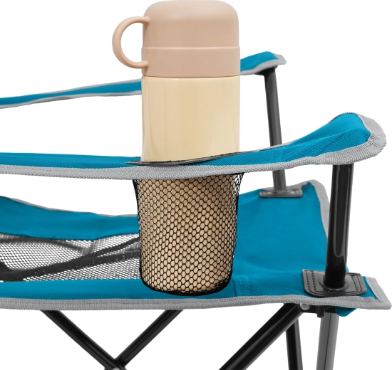 Dankzij het gewicht van slechts 1,87 kg en het snelle vouwmechanisme is de stoel gemakkelijk te dragen in de meegeleverde hoes. In hoogte verstelbare armleuningen en een bekerhouder verhogen het comfort tijdens ontspanning op het strand, bij het kampvuur of op een festival.
