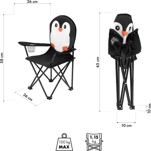 De opvouwbare kinderstoel NILS Fun pinguïn is een betrouwbare metgezel voor elk buitenavontuur. Dankzij het lage gewicht en de compacte afmetingen is hij makkelijk te dragen en op te bergen in de meegeleverde tas. Comfortabele zit en veilige uitvoering worden gewaardeerd door kinderen en ouders tijdens het kamperen, bij uitjes aan het water en in de tuin.