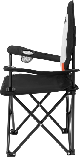 Het robuuste frame van stalen buizen 13 × 0,7 mm en de sterke bekleding van 600D polyester met PVC weerstaan vocht en vuil. De praktische bekerhouder in de armleuning houdt een fles of mok steeds binnen handbereik. De zwarte versterkingsband verhoogt de stabiliteit en levensduur bij frequent gebruik.