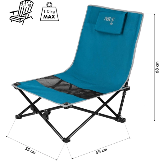 Geniet zorgeloos van ontspanning aan het water of in de tuin met de opvouwbare strandstoel NILS Camp. Hij combineert een stevige stalen constructie, een duurzame 600D bekleding met PVC, een laag gewicht van 2,2 kg en compacte afmetingen in opgevouwen staat, waardoor hij ideaal is voor strand, camping, picknick en festivals. Ondanks het lage gewicht biedt hij een draagvermogen tot 110 kg en een comfortabele ergonomische zitting met rugleuning.