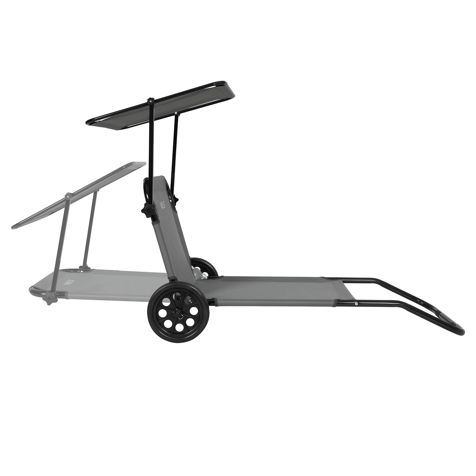 Twee grote wielen maken het mogelijk het ligbed eenvoudig te trekken als een koffer. Ideaal voor strand, camping en tuin – zonder tillen en zonder demontage.