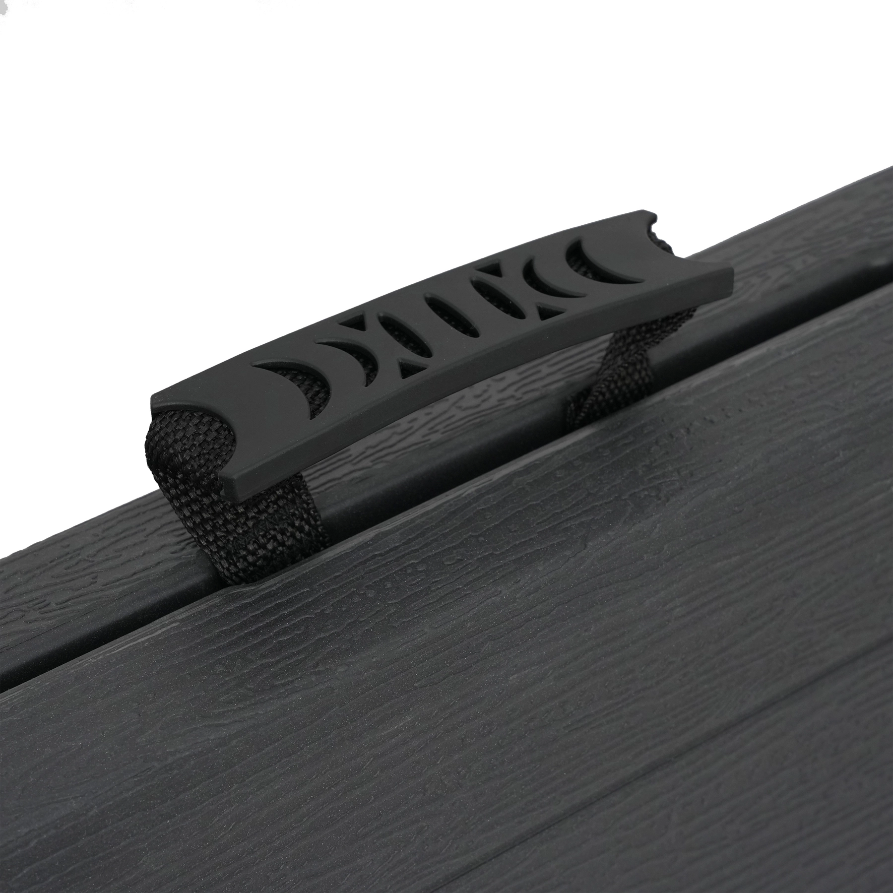 De tafel vouw je in een handomdraai op zonder gereedschap. In opgevouwen toestand heeft hij een praktisch handvat en minimale afmetingen van 91 × 74 × 7 cm voor eenvoudig dragen en opbergen.