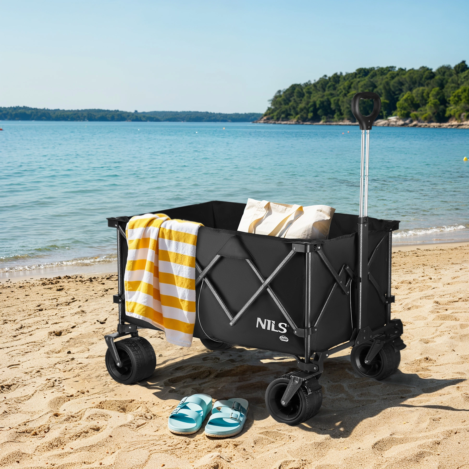 De NILS Camp wagen is ontworpen voor het eenvoudig vervoeren van alles wat je nodig hebt – van kampeerspullen en boodschappen tot tuingereedschap. Het stalen frame met poedercoating garandeert hoge duurzaamheid en een lange levensduur, terwijl de bak van 600D Oxford-materiaal bestand is tegen slijtage, vocht en zwaardere buitensituaties.