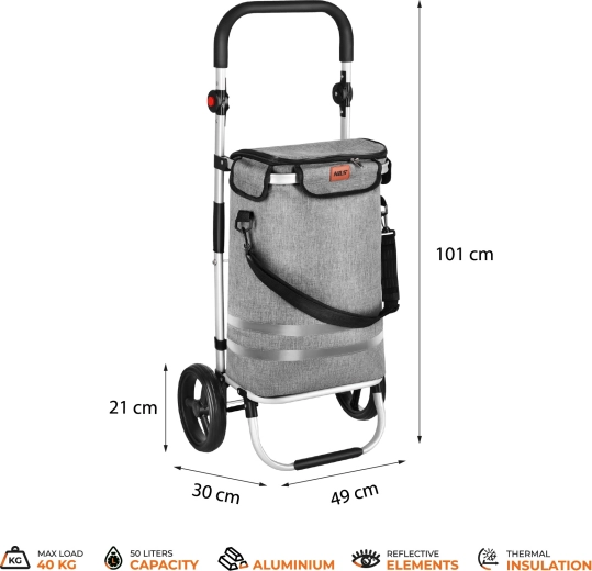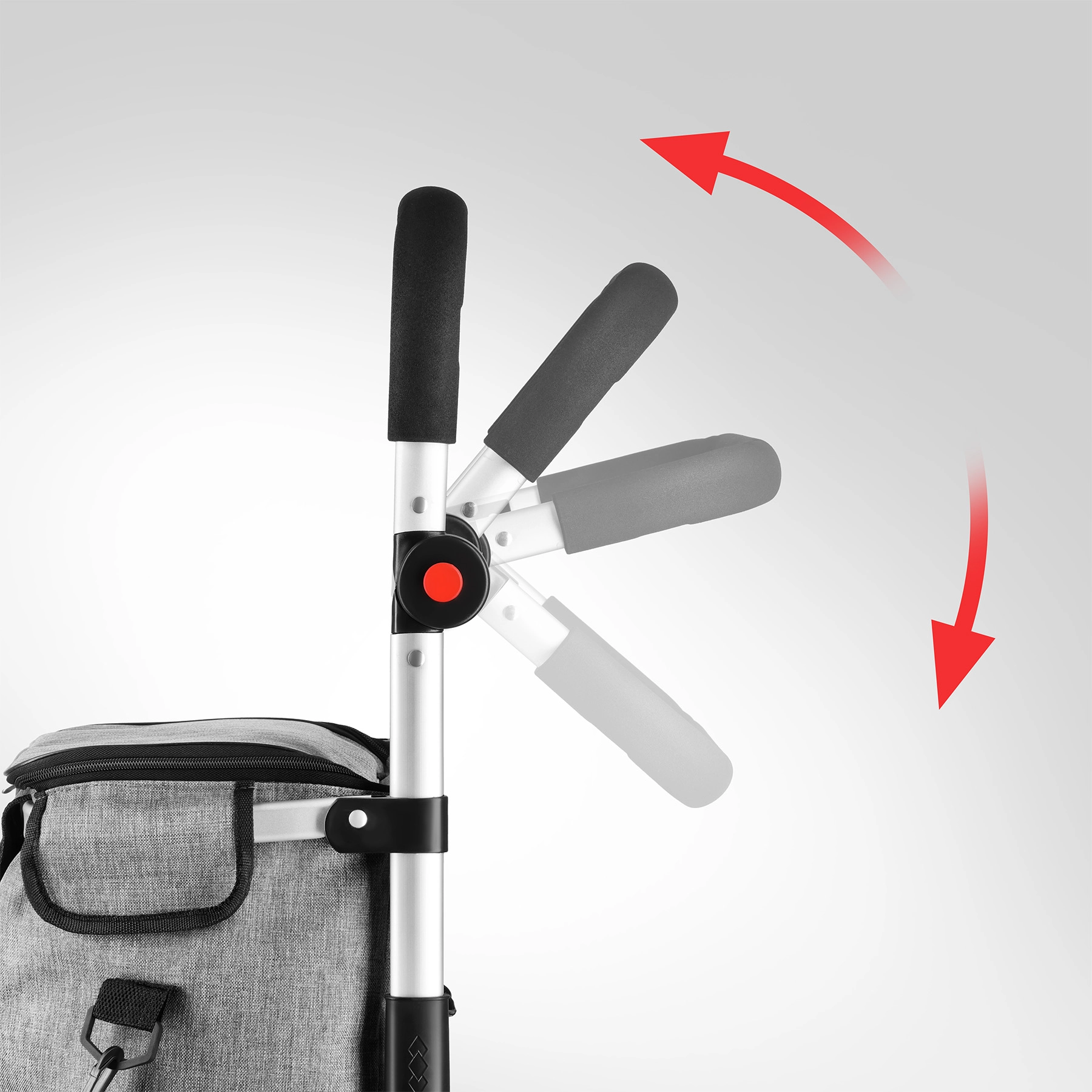 Neem ook een grote boodschappenlast mee dankzij 50 liter inhoud en een draagvermogen tot 40 kg. Het lichte aluminium frame zorgt voor stabiliteit en een laag gewicht voor comfortabel hanteren.
