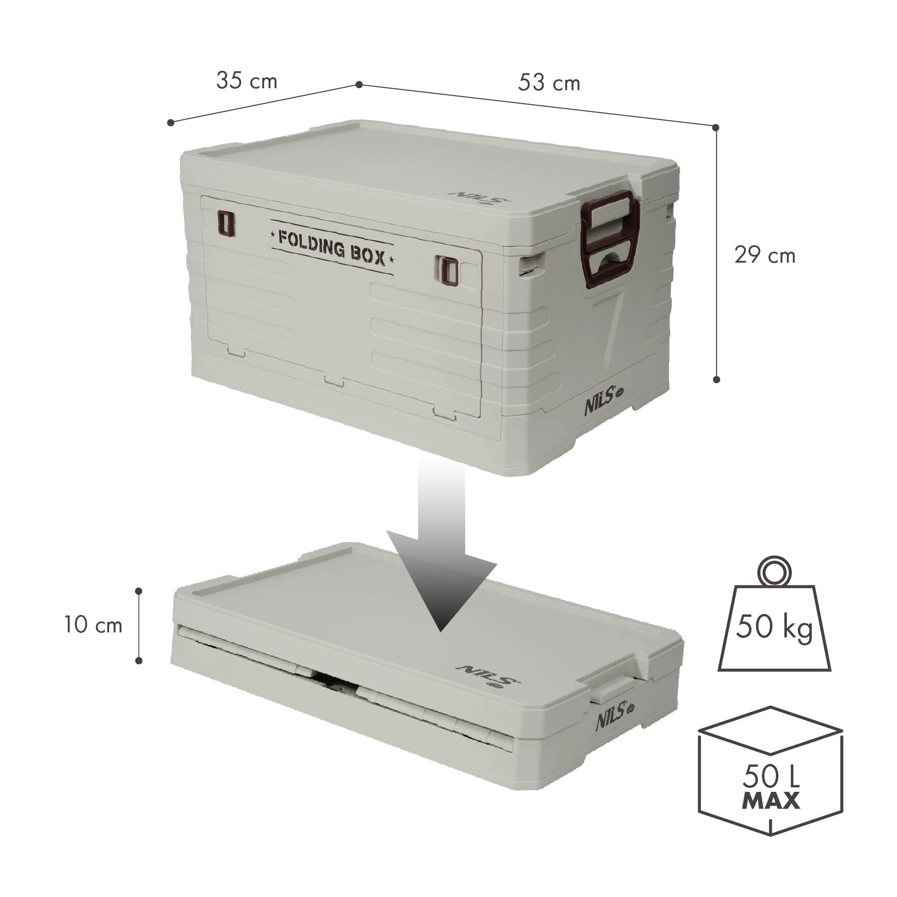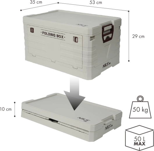 De inklapbare opbergbox met deksel van NILS Camp is ideaal voor auto, kamperen, werkplaats en huishouden. Biedt een ruime inhoud van 50 l, duurzaam PP-ontwerp en snel inklappen tot slechts 10 cm hoogte om ruimte te besparen. Dankzij het klikdeksel en de zijhandgrepen is de inhoud veilig en is de handling eenvoudig.