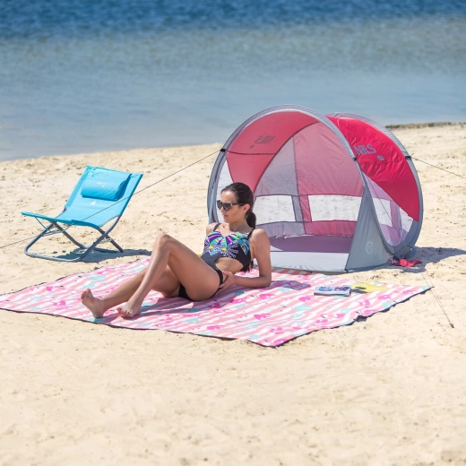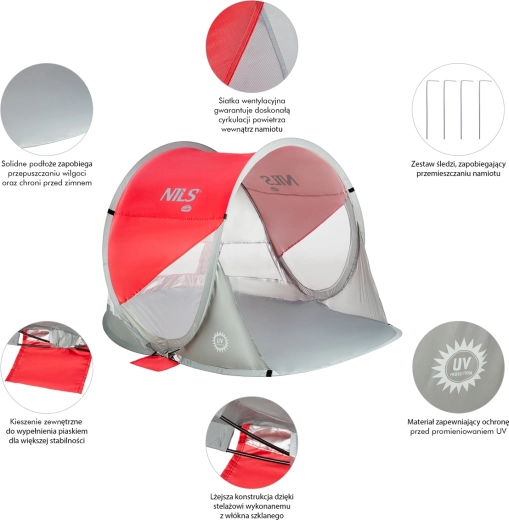 De zelfopvouwende strandtent NILS Camp is een uitstekende keuze voor hete dagen aan het water. Dankzij het automatische systeem klapt hij in een paar seconden uit en net zo eenvoudig weer in tot een compacte ronde tas met handvat. Biedt betrouwbare zonbescherming met 96% UV-reflectie en creëert een schaduwrijke plek om te ontspannen.