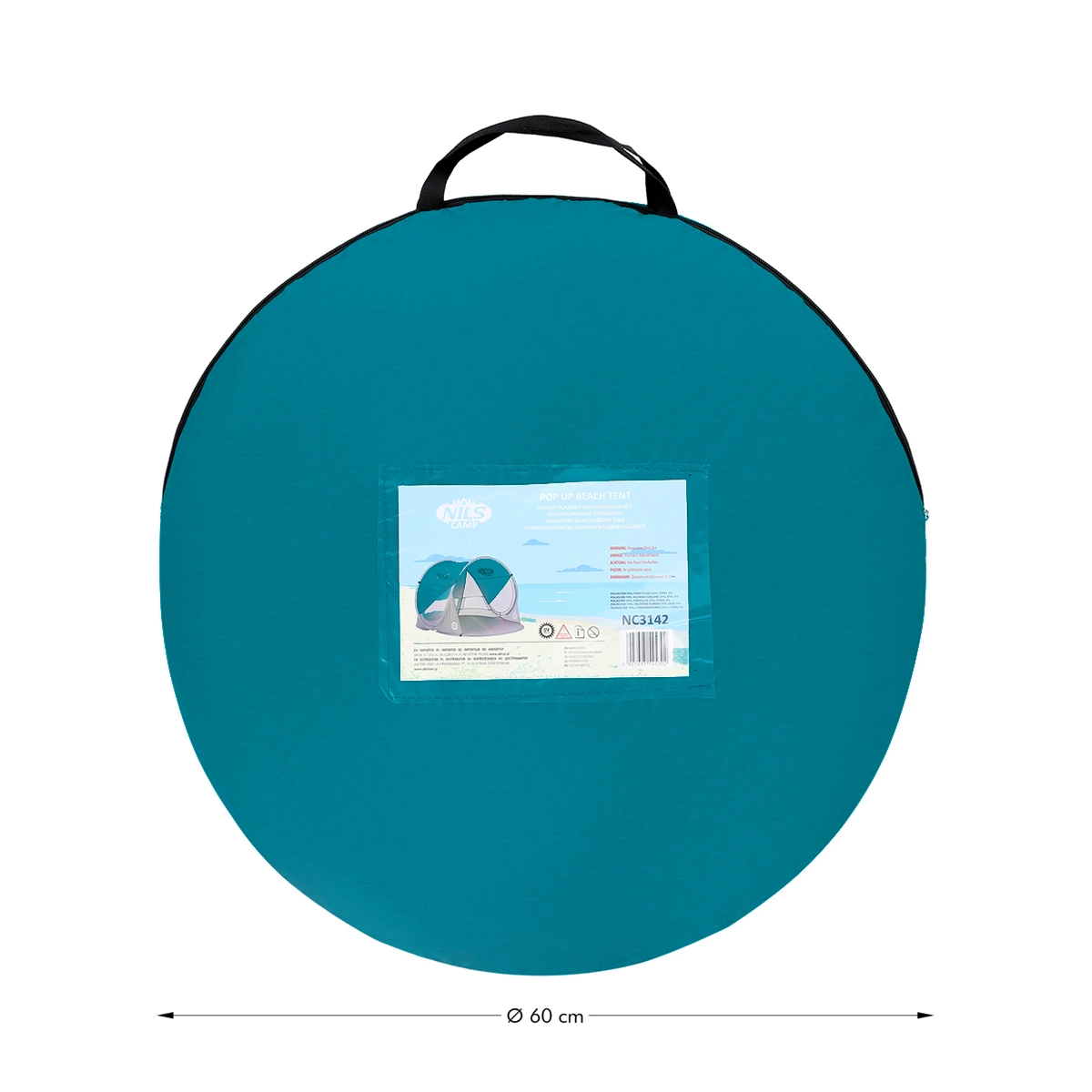 De zelfopzettende strandtent NILS Camp is ontworpen voor snelle en comfortabele bescherming tegen zon en wind. Haal hem simpelweg uit de meegeleverde ronde tas en de tent klapt vanzelf uit. Dankzij de UV-reflectie van 96% beschermt hij tegen schadelijke straling en biedt hij een comfortabele plek voor zowel kinderen als volwassenen.