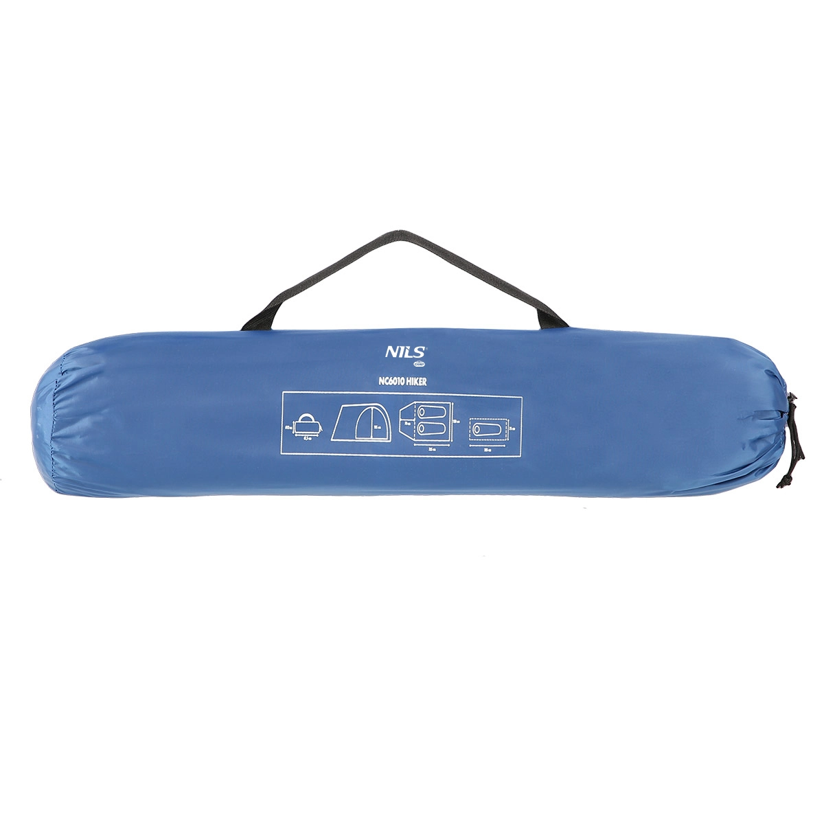 Lichte en compacte tent voor 2 personen, NILS CAMP Hiker NC6010, biedt snelle opbouw, waterdichtheid 3000 mm, UV-bescherming en een praktische voortent voor schoenen en rugzakken. Dankzij de muskietennet, ventilatieopening en getapete naden zorgt hij voor betrouwbare beschutting, ook bij slechter weer. Na het inpakken is hij zeer compact en licht – ideaal voor trektochten met rugzak.