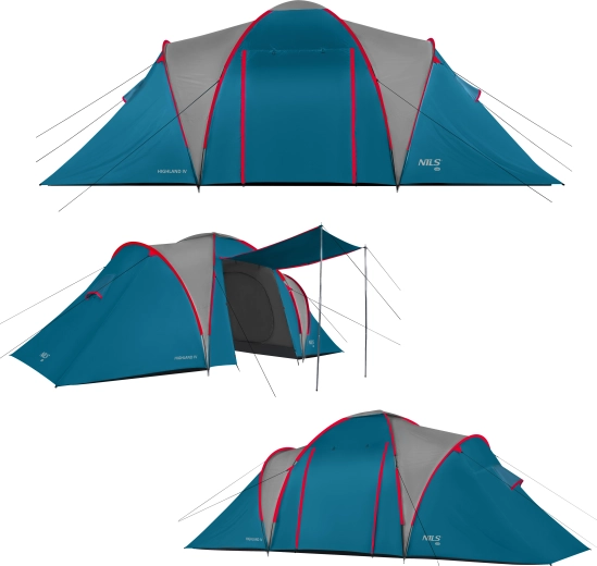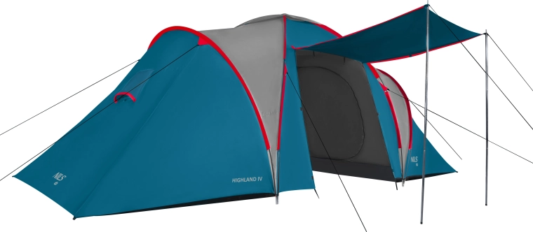 NILS Camp Highland IV is een betrouwbare familietent, ontworpen voor comfortabel kamperen van voorjaar tot najaar. Twee aparte tweepersoons slaapcabines en een grote voortent met geïntegreerd grondzeil bieden voldoende ruimte om te slapen en uitrusting op te bergen. Hoge waterdichtheid (4000 mm H2O), getapete naden en een stabiele glasvezelconstructie beschermen tegen ongunstige weersomstandigheden.