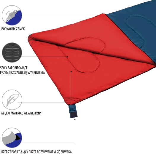 Lichte en comfortabele deken-slaapzak van NILS Camp, ideaal voor kamperen, in de tuin of onder de blote hemel. Dankzij de polyester vulling van 200 g/m2 en de kwalitatieve stoffen 170T/190T biedt hij betrouwbare thermische isolatie, vochtbestendigheid en lange levensduur. De dubbelzijdige rits met beveiligingsflap maakt het bedienen eenvoudig en na volledig openen ontstaat er een comfortabele deken. Twee slaapzakken kunnen aan elkaar geritst worden tot een tweepersoons.