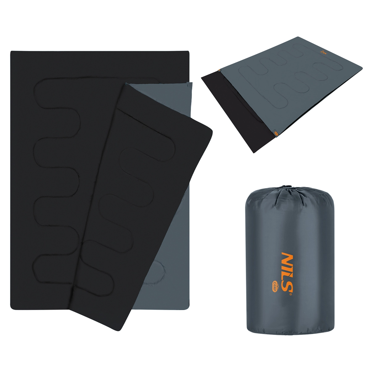 De deken-slaapzak voor twee personen van NILS Camp is een uitstekende keuze voor kamperen, trektochten en weekendtrips. De buitenzijde van 190T polyester W/R Cire en de aangename binnenzijde van 190T Pongee, samen met een vulling van polyestervezels van 250 g/m², bieden stabiel thermisch comfort en vochtbestendigheid. Doorstikking over het hele oppervlak houdt de vulling op zijn plaats, zodat de isolatie de hele nacht gelijkmatig blijft.