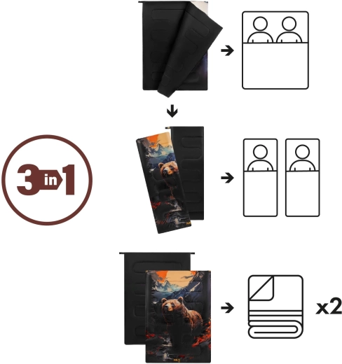 Zoek je één systeem voor al je avonturen? De NILS Camp Bear 3-in-1 past zich razendsnel aan – rits samen tot een ruime dubbelslaapzak, deel op in twee volwaardige slaapzakken of rits open tot twee afzonderlijke dekens. Praktische ritsen zorgen voor snel scheiden en koppelen en maximale flexibiliteit onderweg.