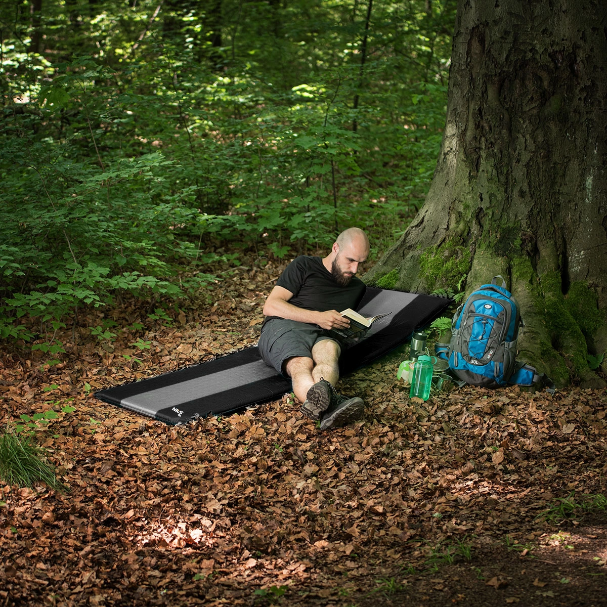 Het matje is eenvoudig in te pakken – open het ventiel, rol op vanaf de tegenoverliggende zijde, zet vast met de riempjes met gesp en berg op in de meegeleverde zak. Dankzij de compacte afmetingen na het inpakken en het lage gewicht is het een uitstekende keuze voor wandelen, meerdaagse tochten en roadtrips.