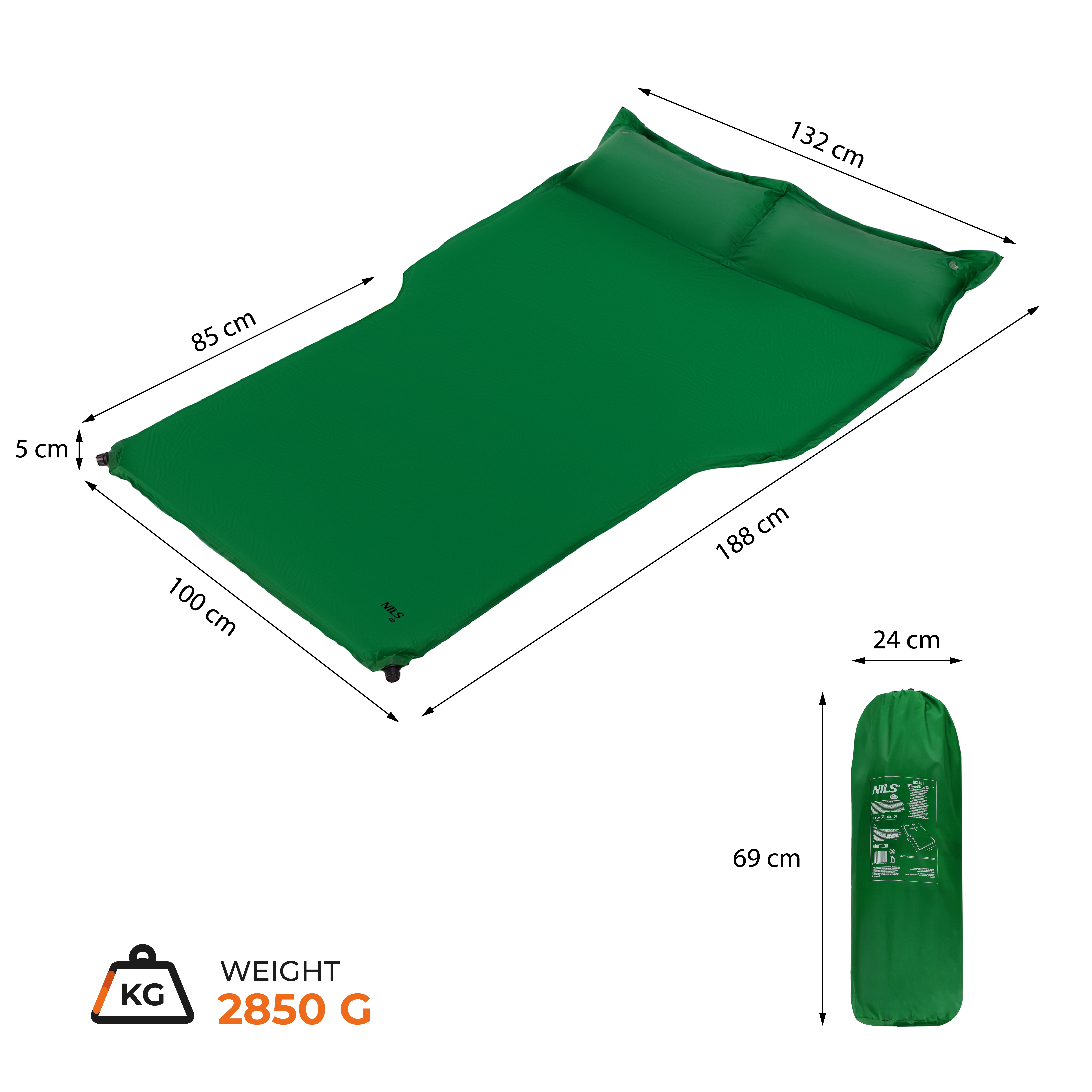 Praktische zelfopblazende automat van NILS Camp verandert de kofferbak van je auto in een comfortabele slaapplaats binnen een paar minuten. Dankzij de dikte van 5 cm, de geïntegreerde kussentjes en de duurzame materialen biedt het comfort, snelle voorbereiding en betrouwbare isolatie voor carcamping, uitstapjes en noodovernachtingen.