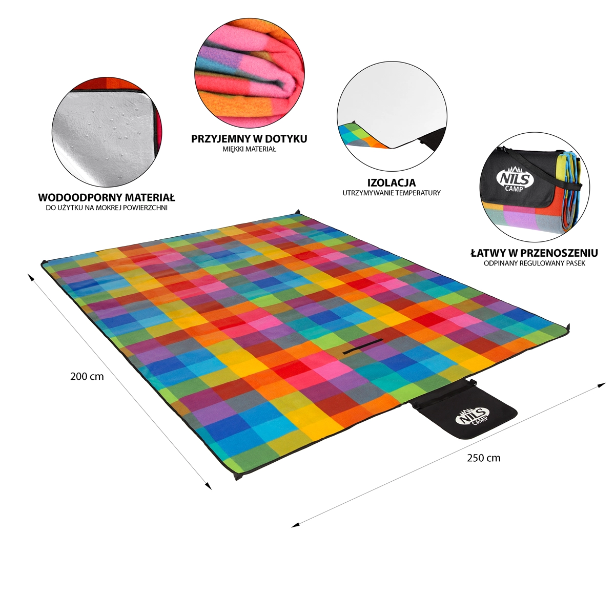Geniet van ontspanning in het park, bij het water of in de tuin met de NILS CAMP NC2221 deken. De bovenkant van zachte fleece is prettig aan te raken, terwijl de onderlaag van aluminiumfolie met waterdichte afwerking betrouwbaar isoleert tegen kou en vocht van nat gras of zand.