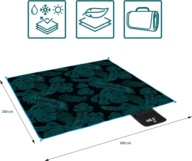 Geniet van ontspannen momenten in de natuur met het picknickkleed NILS Camp Leaves met afmetingen van 200 × 200 cm. De drielaagse constructie met een isolatiefolie aan de onderzijde beschermt tegen kou en vocht, terwijl de zachte fleece zorgt voor comfortabel zitten. Een praktische ritsvak, ogen voor verankering en een draagriem maken dit kleed tot de ideale metgezel voor picknick, strand en tuin.