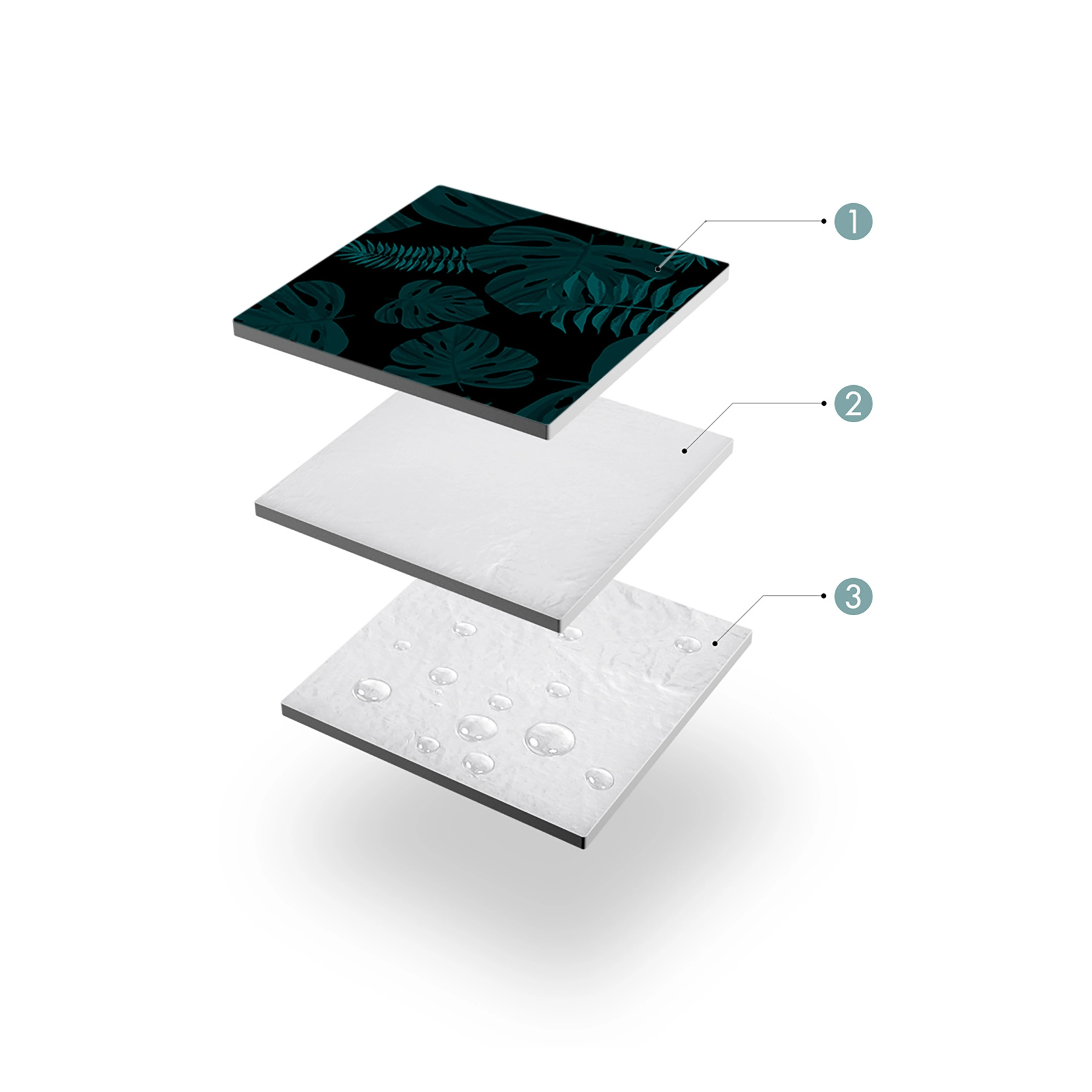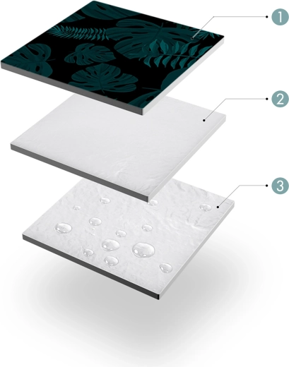 - Drielaagse isolatie – fleece, 2 mm schuim, PE-folie met alu-coating.