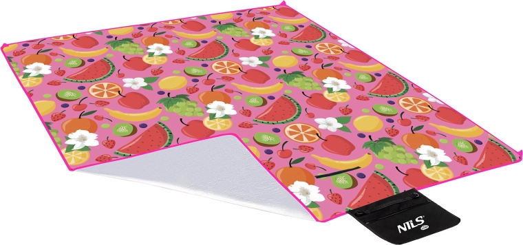 Het picknickkleed NILS Camp Fruits is ideaal voor picknicks, strand, tuin en festivals. De bovenlaag van zachte fleece voelt prettig aan, de middelste schuimvulling verhoogt het zitcomfort en de onderzijde van PE met aluminiumcoating beschermt betrouwbaar tegen kou en vocht. Dankzij de afmetingen van 200 × 200 cm biedt het comfort voor het hele gezin.