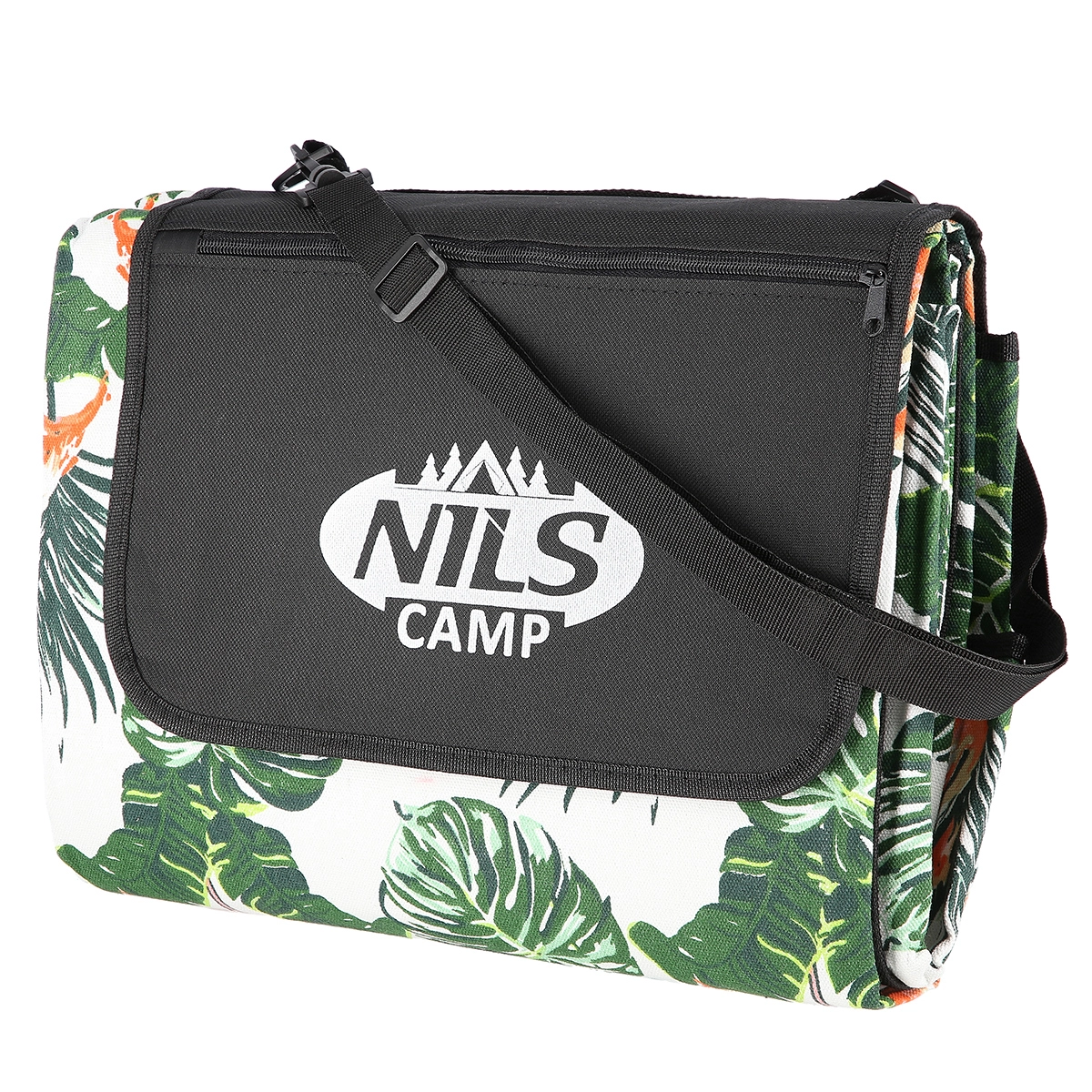 Na gebruik vouw je het kleed eenvoudig op tot een compact pakket met handgreep en verstelbare schouderriem, zodat het comfortabel te dragen is. In de klep vind je bovendien een ruim ritsvak waarin je sleutels, telefoon of portemonnee veilig kunt opbergen – alles binnen handbereik.