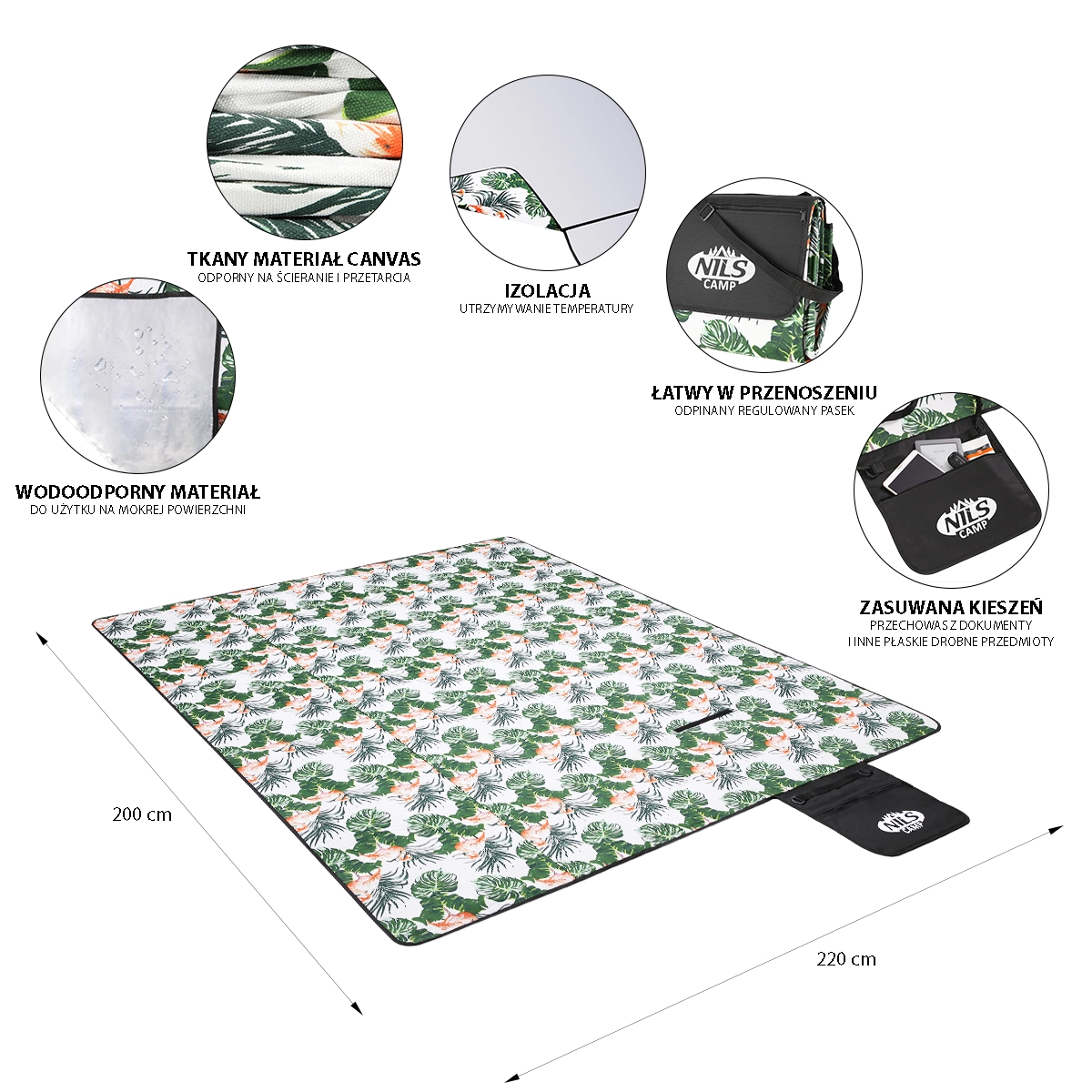 • Groot formaat – 200 × 220 cm voor gezins-picknicks en ontspanning.